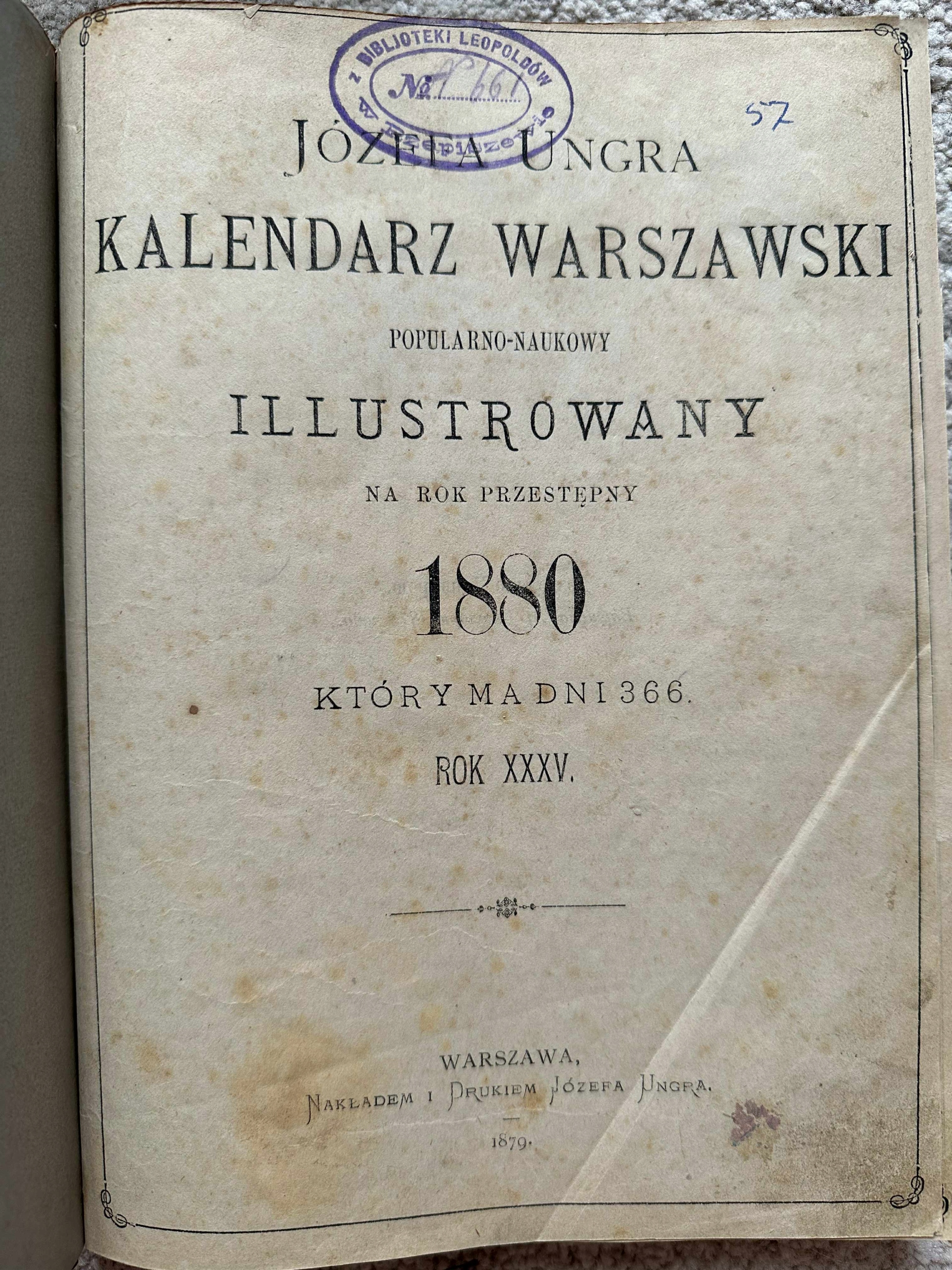 józef ungra, Варшавський популярний науковий календар проілюстровано на 1880 р.