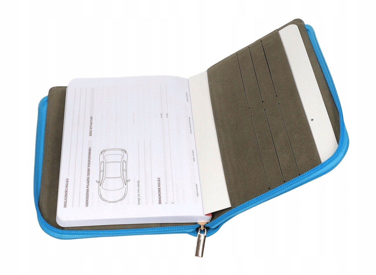 На внутрішній стороні обкладинки ми знайдемо велику кишеню, закритий для блокування, і практично вкладки для додаткових документів, візитних карток, банкнот та нотаток.