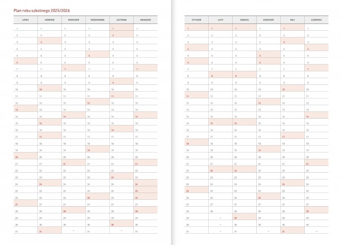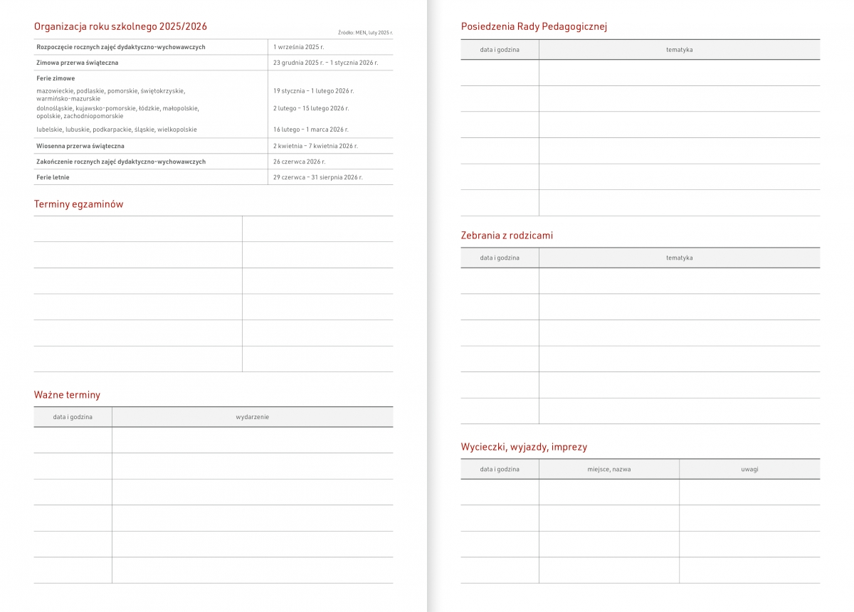 - Плановий для школи 2025/2026 (вересня> вересня> вересня. 2026) - Наступні місяці навчального року у колонках із місцем для замітків у кожен день