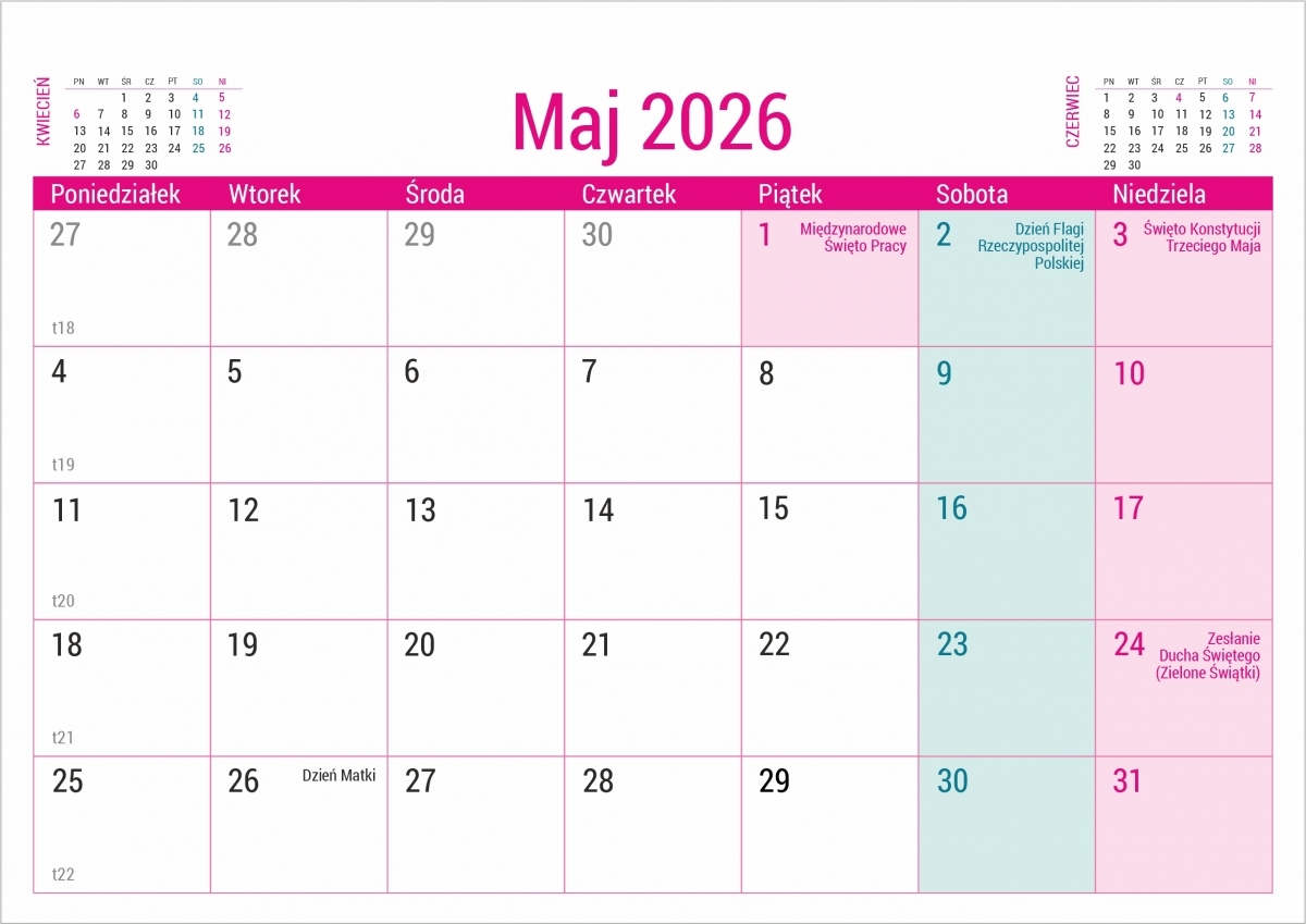 прозорий великий календар у щомісячній системі, де для запису щодня для запису. На кожній картці календаря ми також знайдемо попередній перегляд попереднього та наступного місяця.