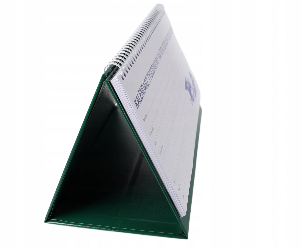 Стабільна підставка в красивому і міцному шпоні, що нагадує шкіру, дозволяє поставити календар на стіл. Зручний календар у тижневій системі містить багато місця для нотаток у кожен день.