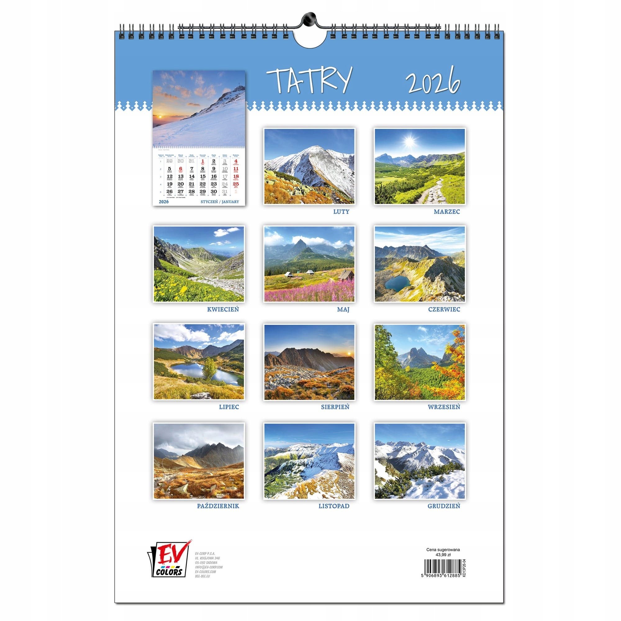 Настінний календар 2026 B3 33 x 48 см 13 дощок TATRAS