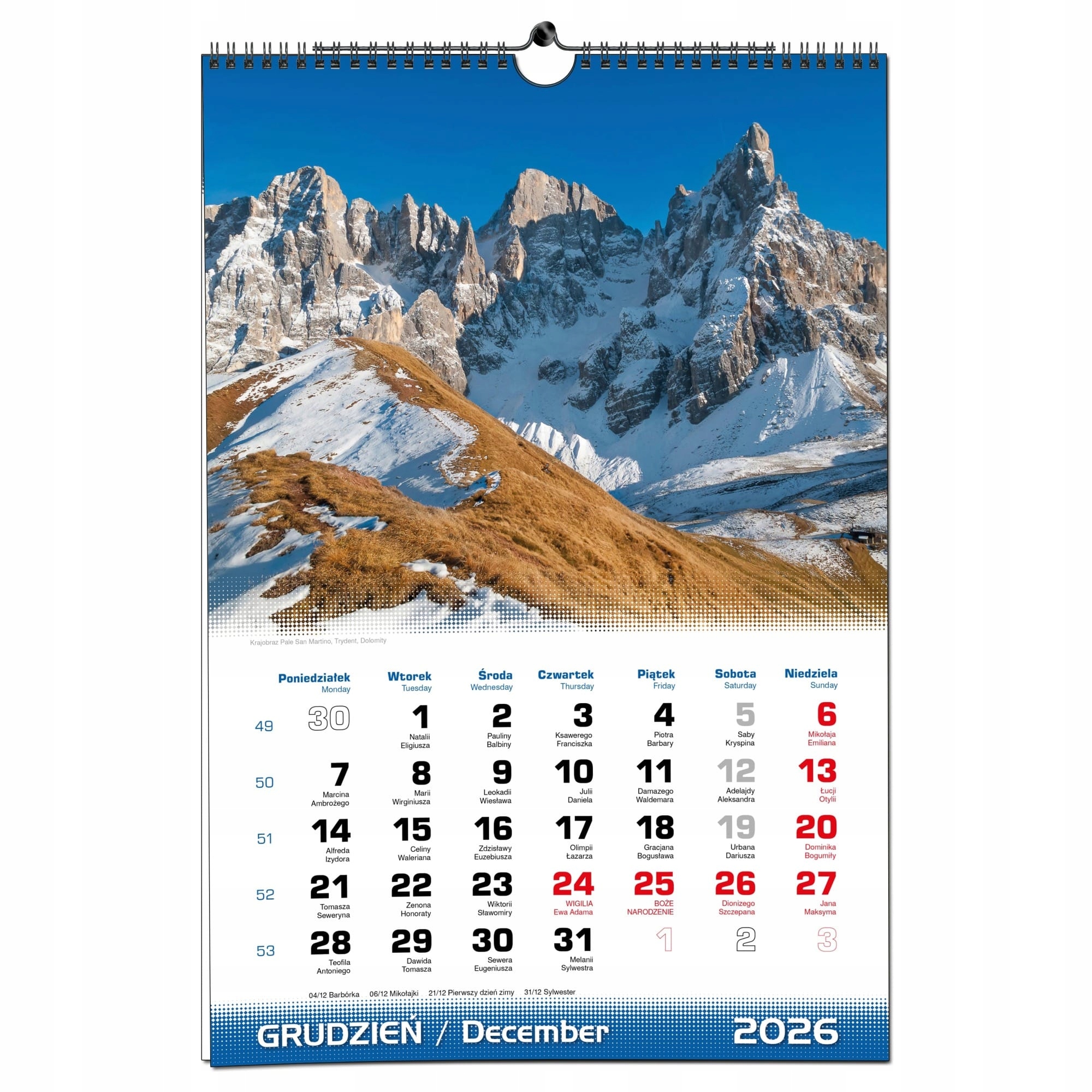 - назви місяців і днів тижня польською та англійською мовами