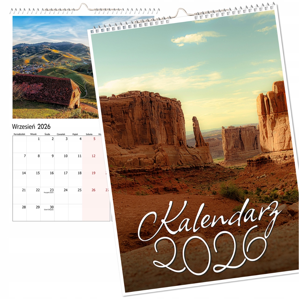 Тип календаря: підвісний, настінний, спіральний. Календар польською мовою.
