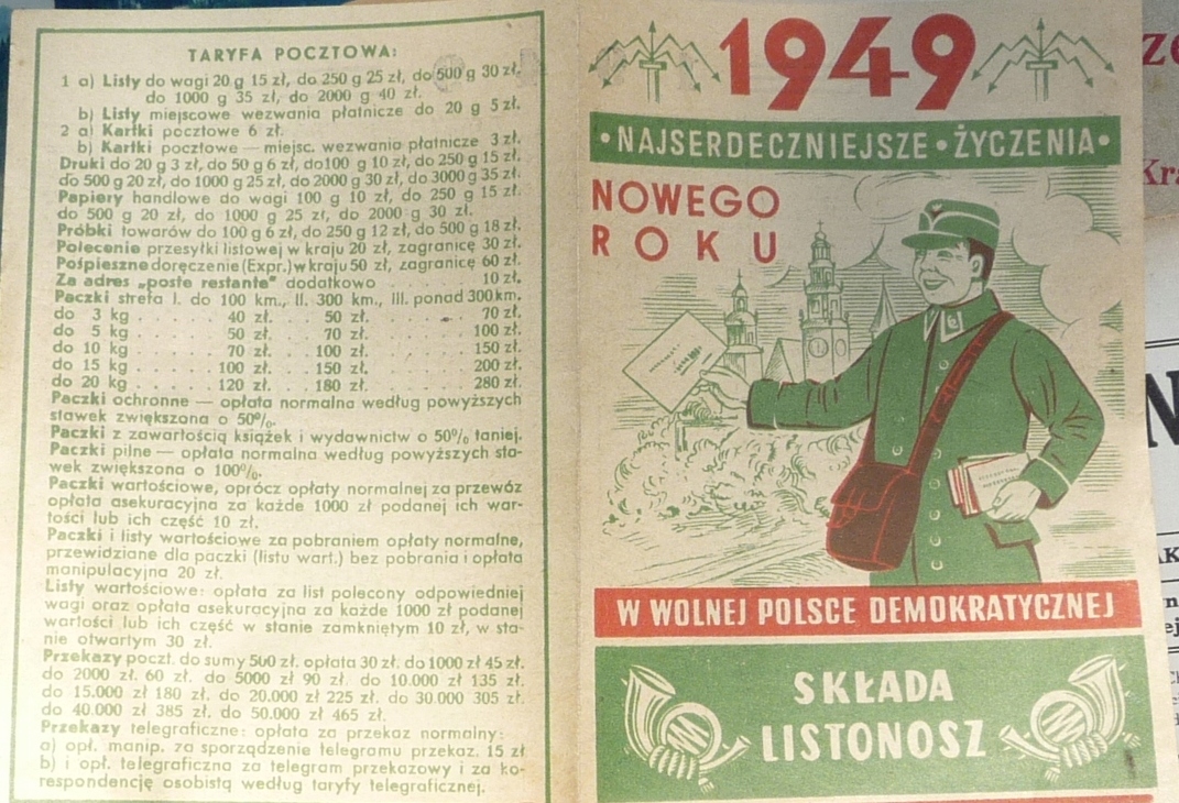 КАЛЕНДАР 1949 Листоноша шле найтепліші побажання з Новим роком у Вільній Демократичній Польщі