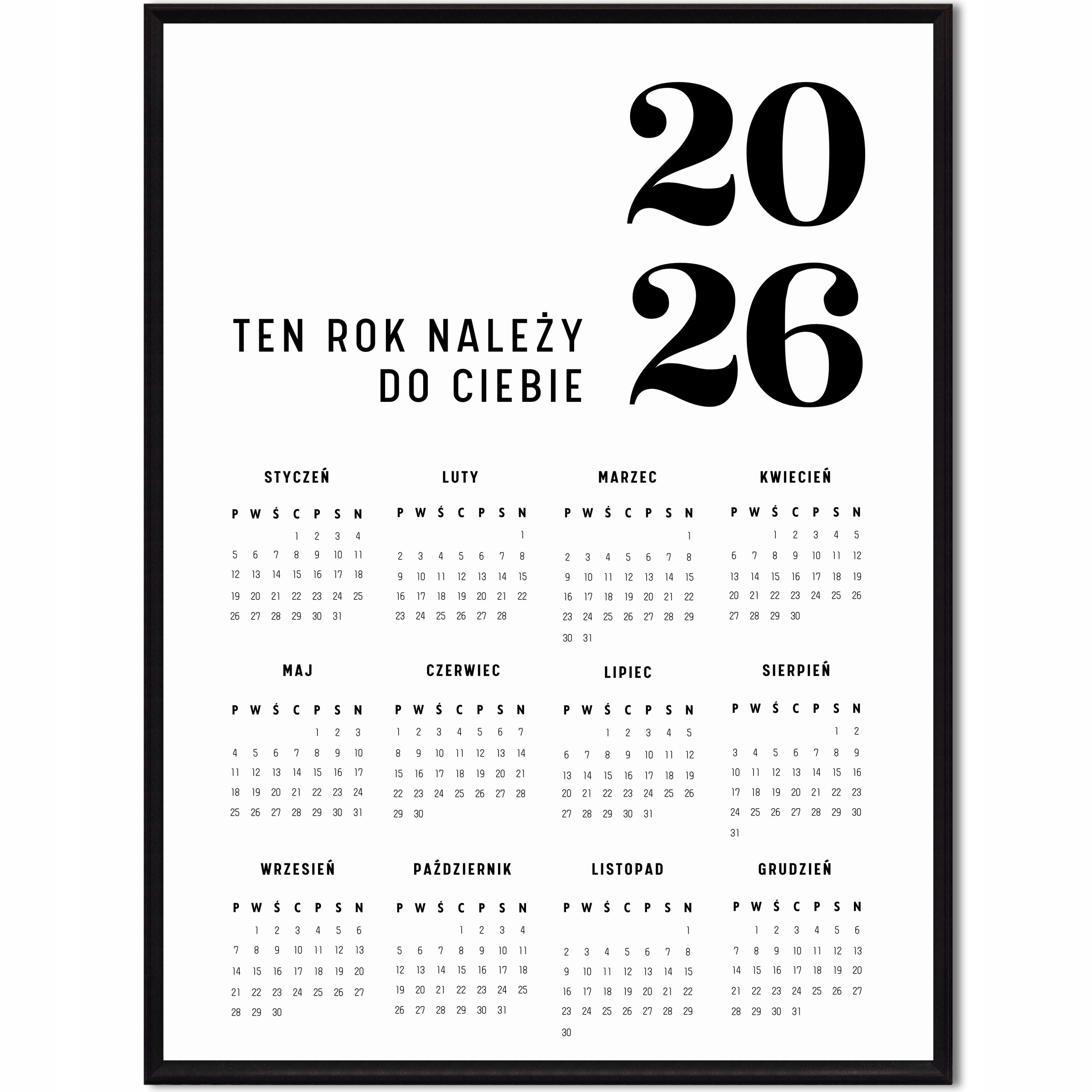 Мінімалістичний та елегантний плакат із зображенням календаря на 2026 рік з мотивуючим написом. Ідеально підходить для кабінету, офісу, вітальні, спальні, кухні, над столом і будь-де! Також це чудова ідея для подарунка, адже вона підходить до будь-якого стилю інтер’єру. Не залишайте порожніми стіни, це ідеальне місце, щоб розставити крапки над «i» в інтер’єрі вашого будинку.
