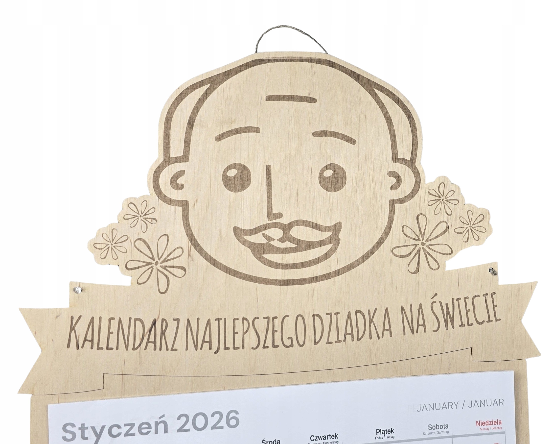 Календар виготовлений з легкої натуральної фанери, з точно виконаним гравіюванням. Чарівна ілюстрація дідуся та ніжні квіткові мотиви надають йому затишного, домашнього характеру, який ідеально вписується в будь-який інтер’єр – кухні, вітальні чи холу.