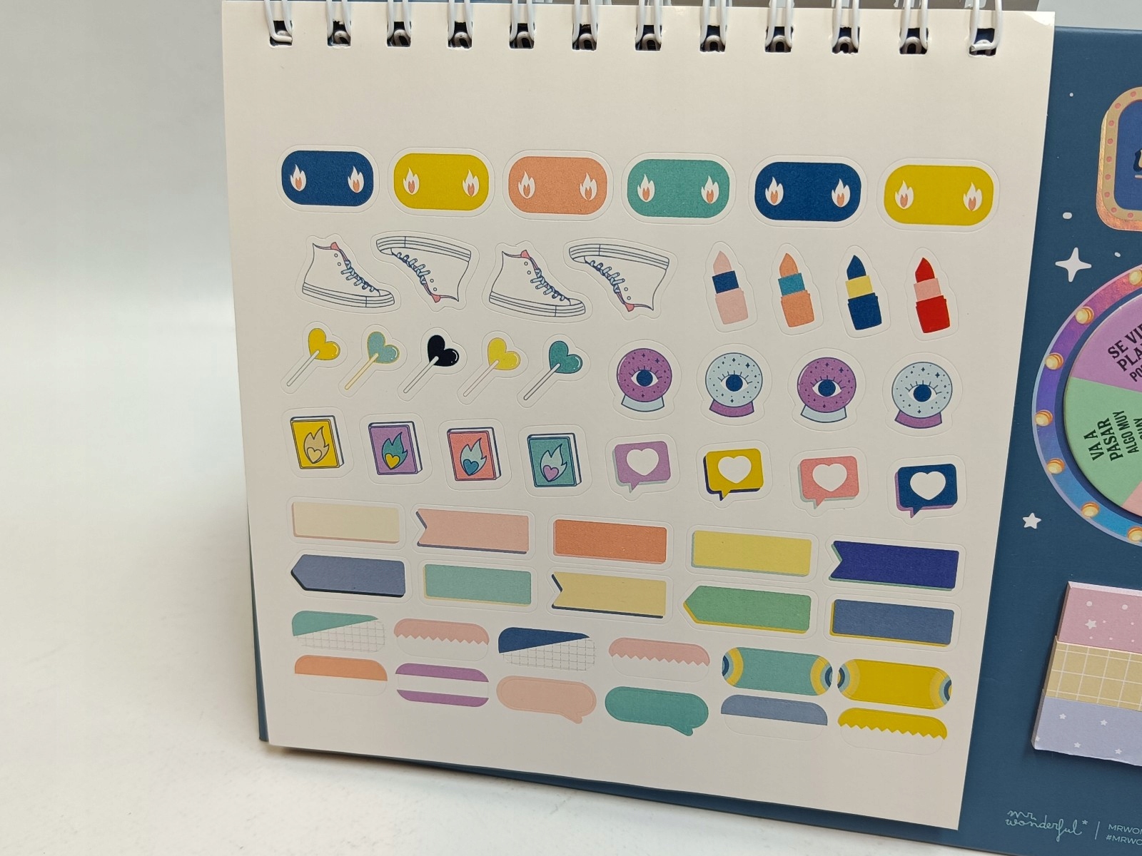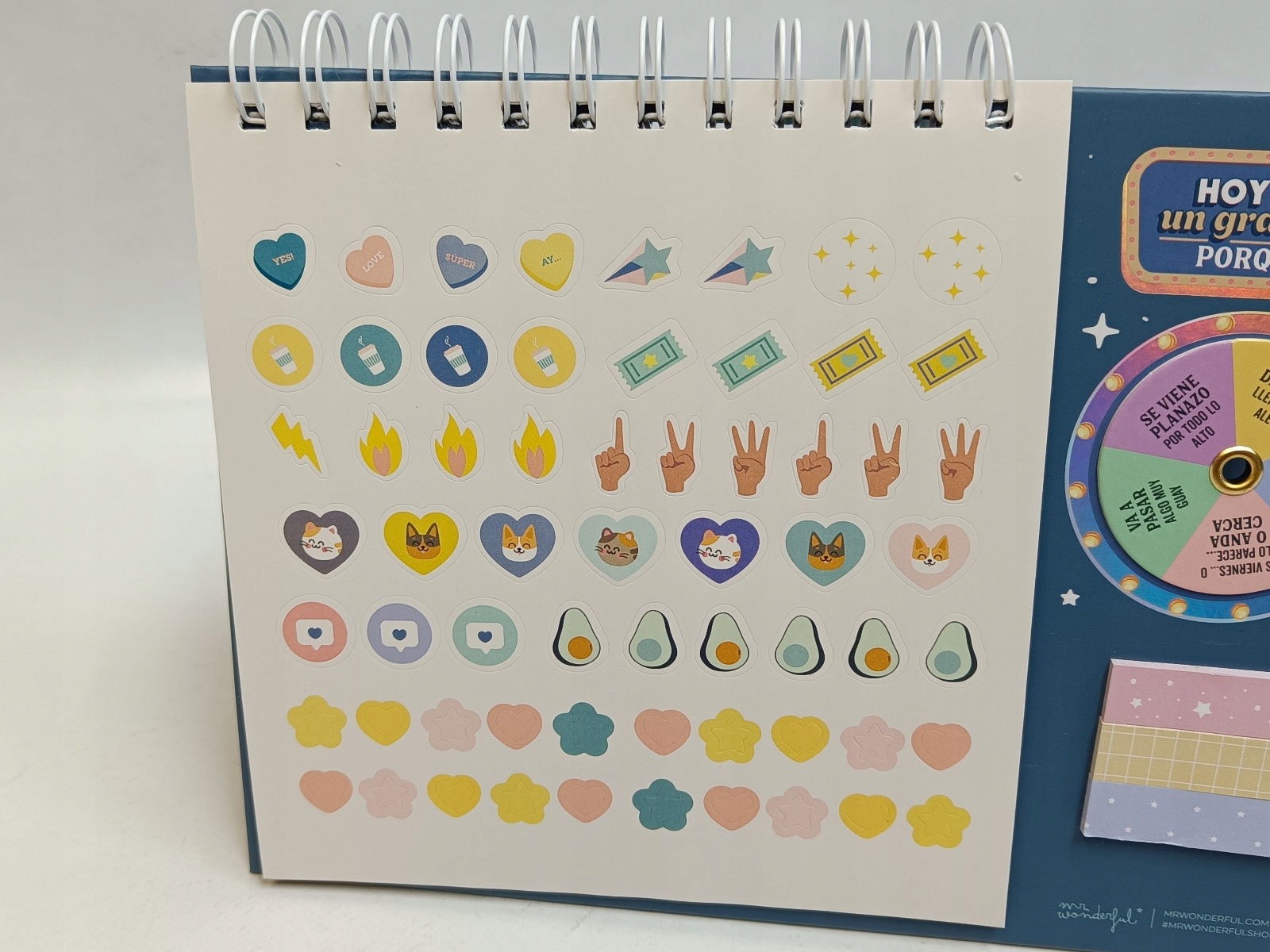 - incluye TRES BLOCS DE MARCAPAGINAS adhesivos y Cuatro Hojas de Pegatinas.