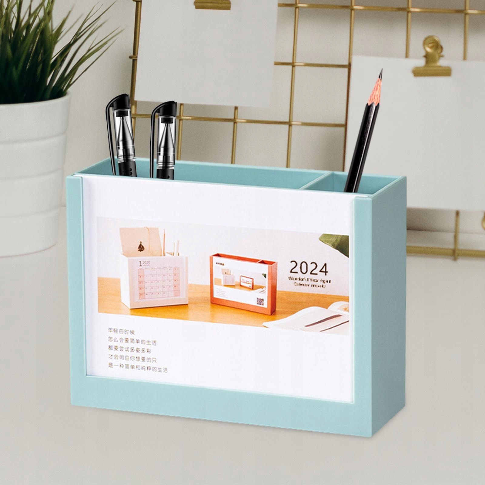 [Міцний матеріал]: Цей тримач ручки з календарем столу на 2024 р. Виготовлений з матеріалу PS та жирного паперу, а його календар креативного столу також може використовуватися як багатофункціональна скринька зберігання.
