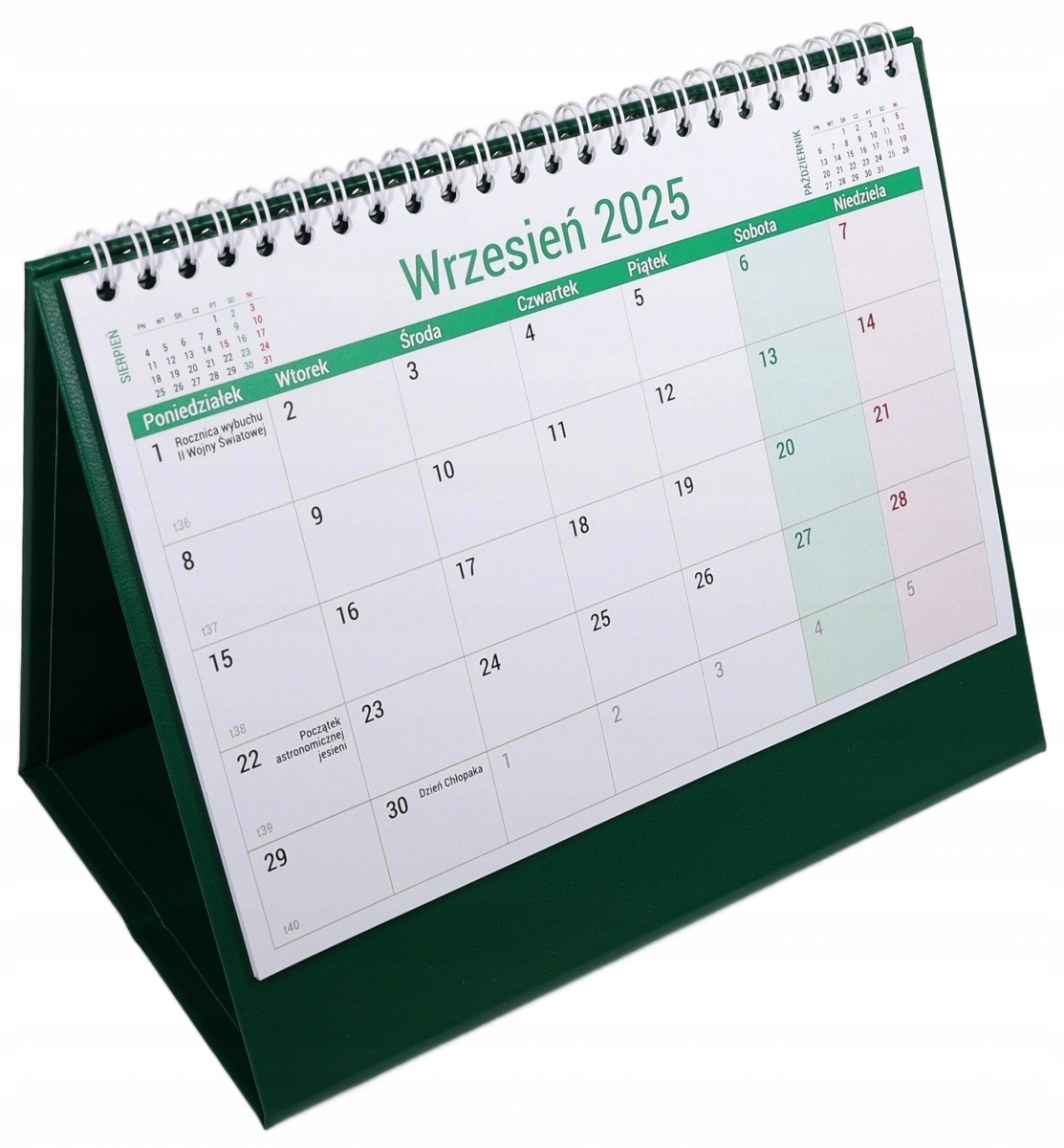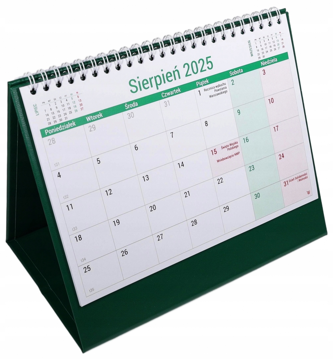 Практичний календар для розміщення на столі. Посилена основа з ексклюзивним шпоном забезпечує довговічність і естетичний вигляд календаря. Великий прозорий календар полегшує планування та керування термінами. Кожного дня є місце, щоб відзначити важливі події або зробити короткий запис. На кожній картці-календарі ми маємо скорочений календар попереднього та наступного місяця. Календар включає неробочі дні, окремі звичаєві та релігійні свята та господарські неділі.