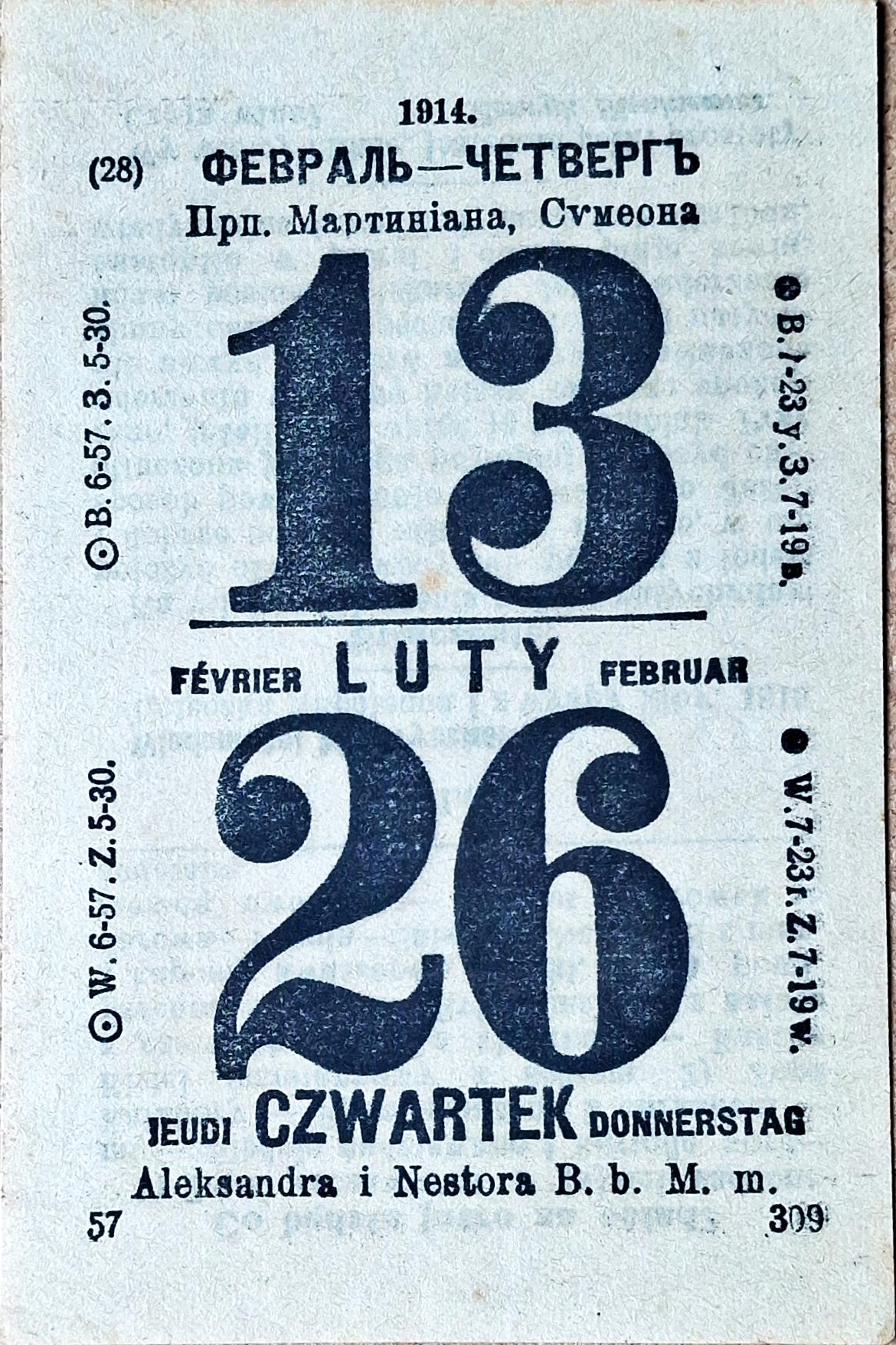Оплачивая «Календарная карта 26 февраля 1914 г.», вы можете быть уверены, что данный товар из каталога «Старые календари» будет доставлен из Польши и проверен на целостность. В цене товара, указанной на сайте, учтена доставка из Польши. Внимание!!! Товары для Евросоюза, согласно законодательству стран Евросоюза, могут отличаться упаковкой или наполнением.