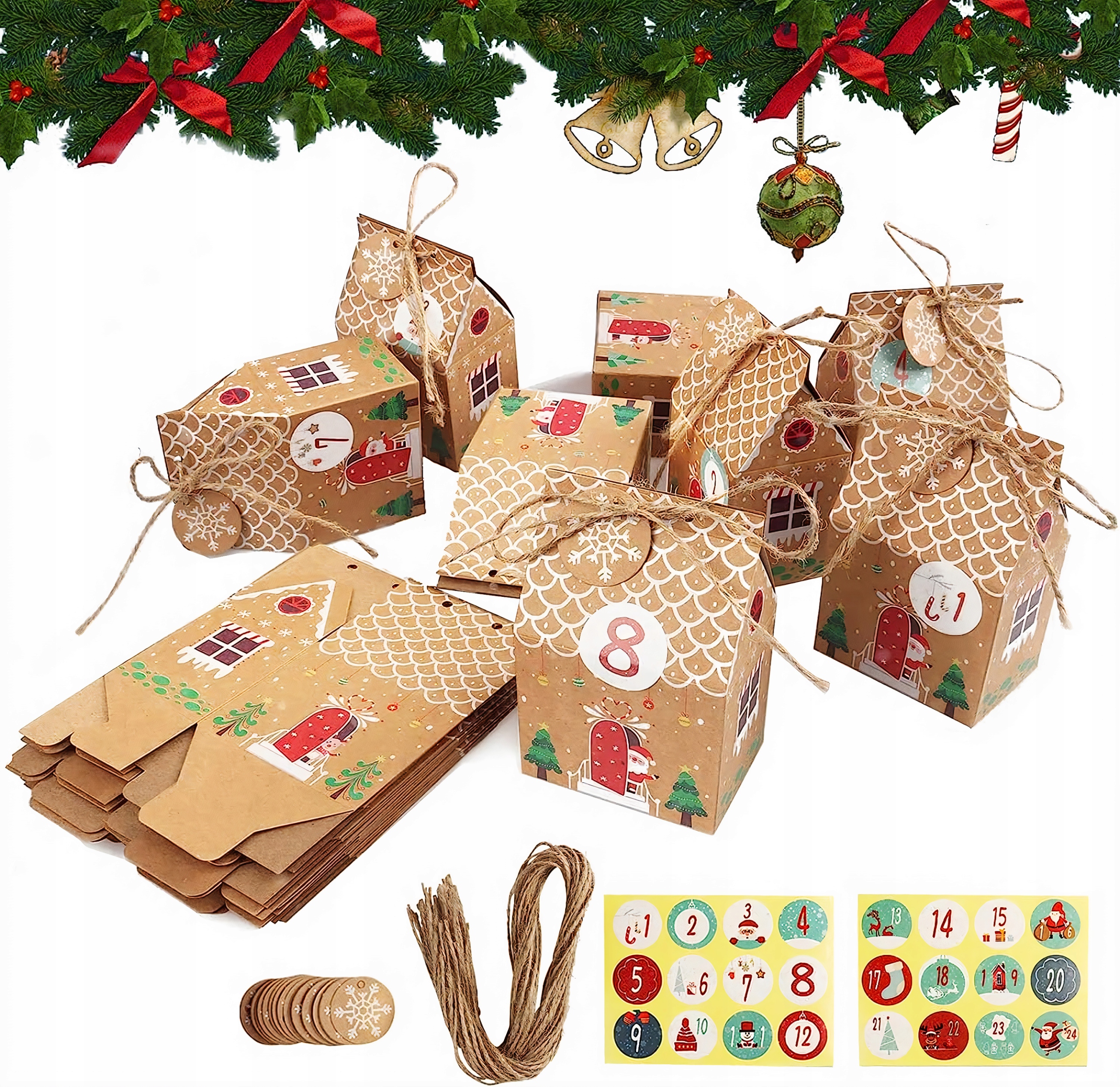 KALENDARZ ADWENTOWY DOMKI DIY 24 sztuki ŚWIĄTECZNE ADWENT DLA DZIECI OZDOBY