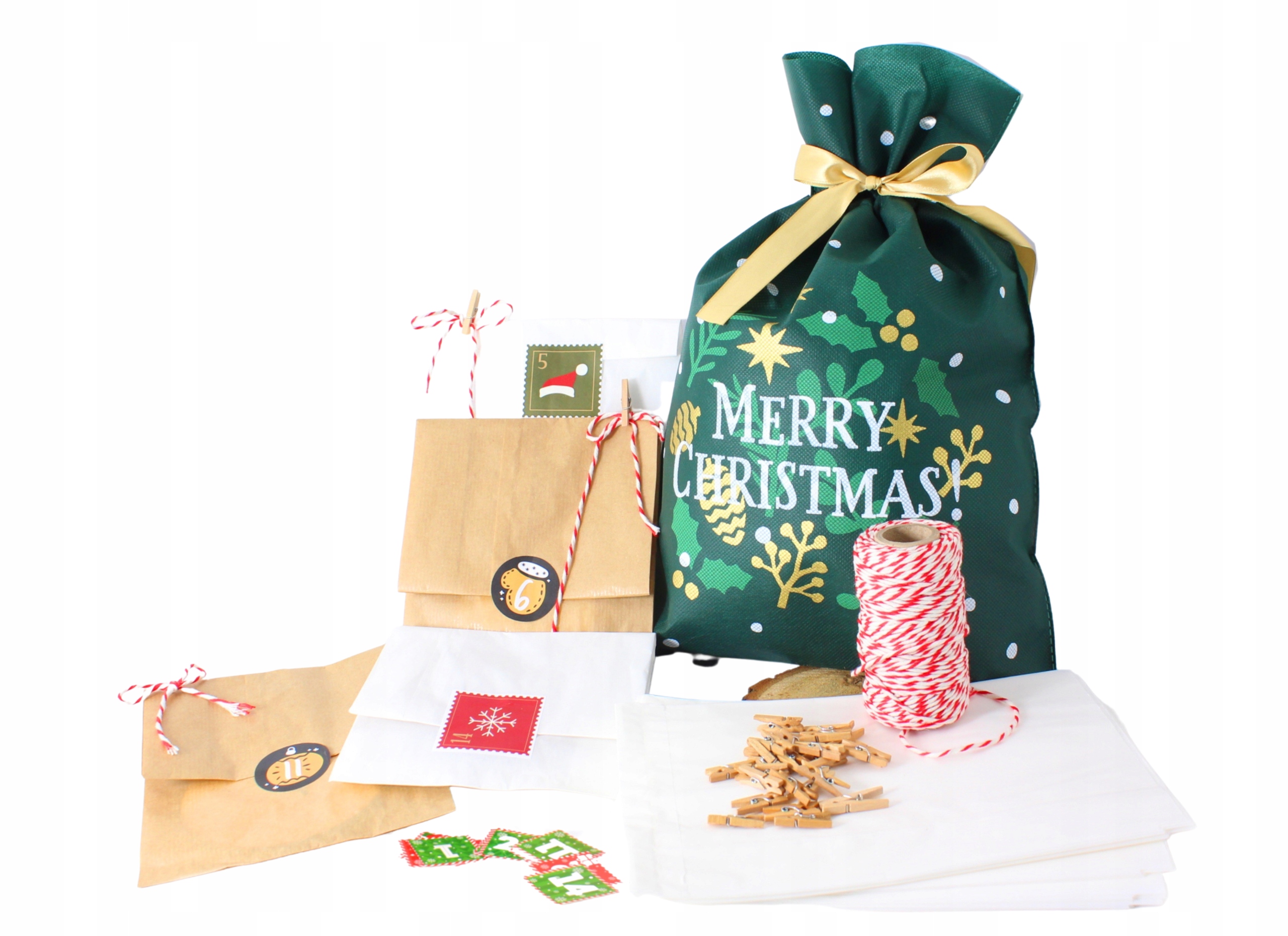 KALENDARZ ADWENTOWY Zestaw DIY Torebki Naklejki