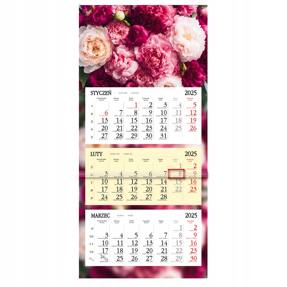 Kalendarz ścienny TRÓJDZIELNY 2025