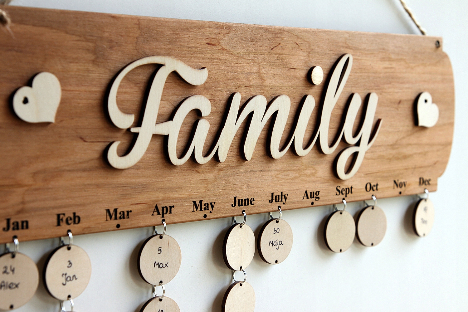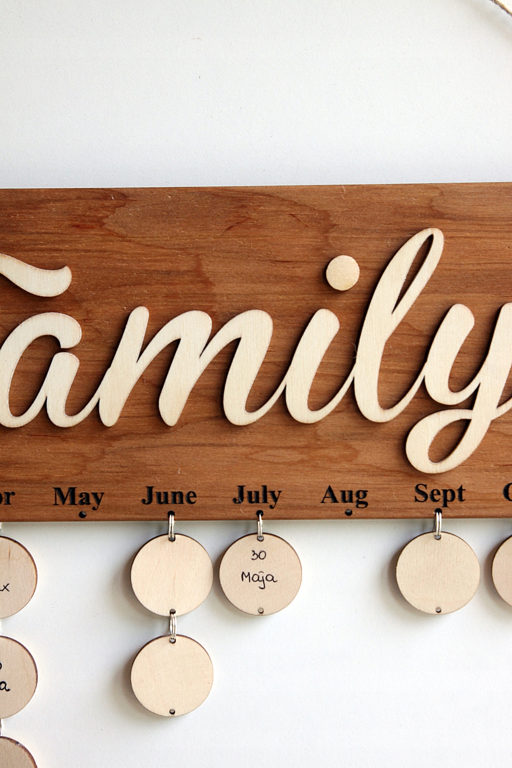 KALENDARZ DREWNIANY FAMILY PREZENT OZDOBA URODZINY