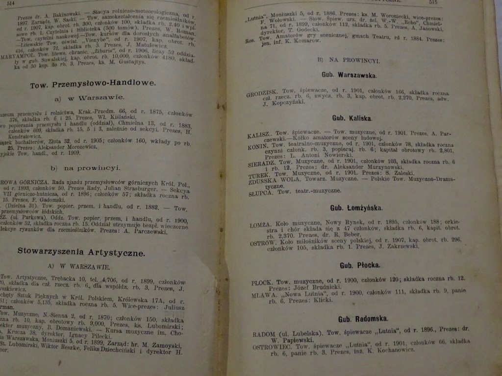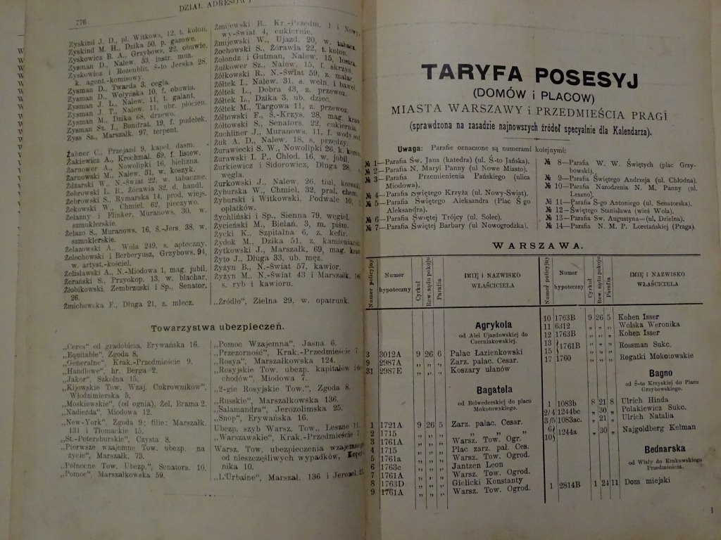 KALENDARZ INFORMACYJNO ADRESOWY WARSZAWA 1910