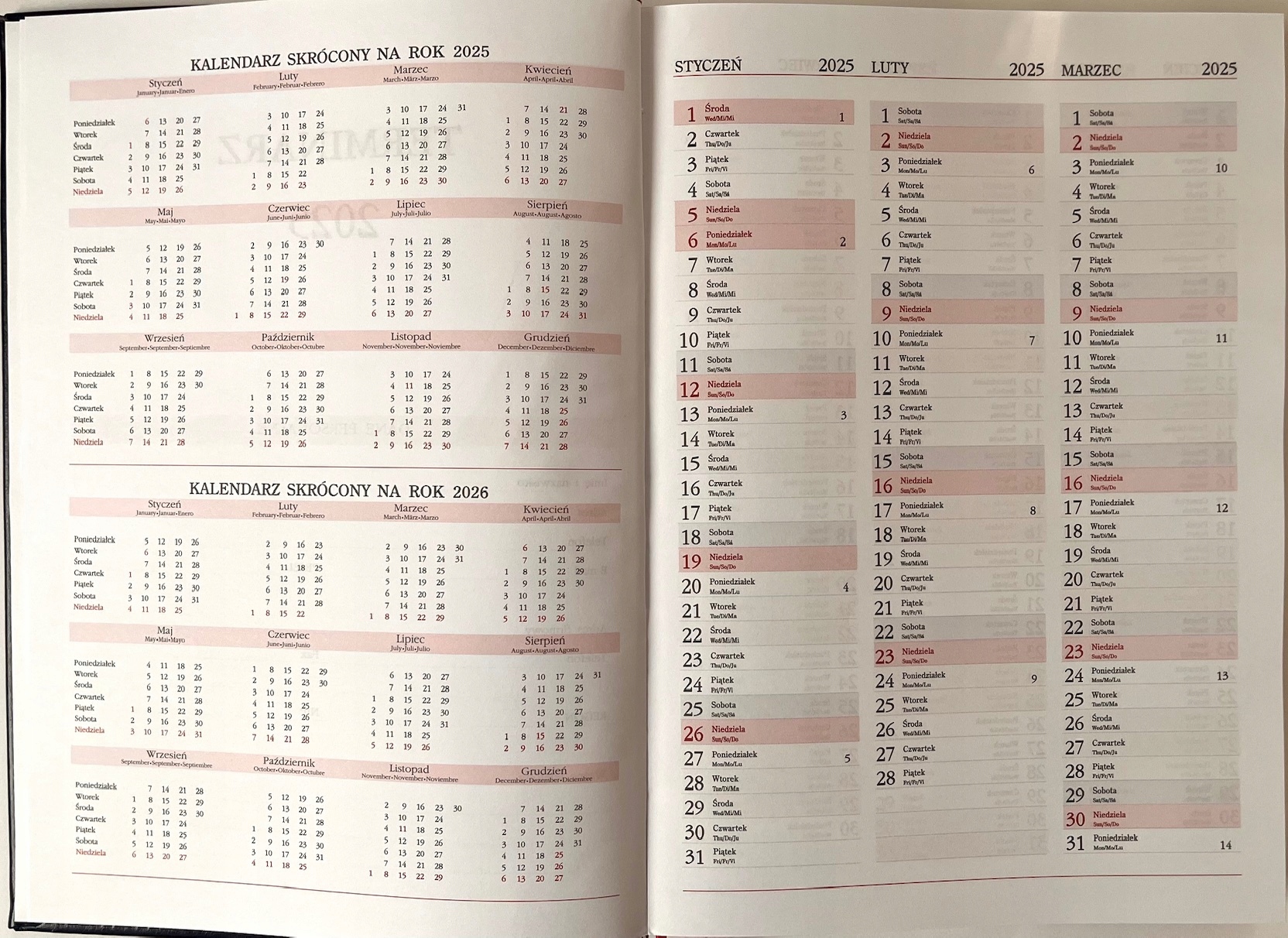 Kalendarz książkowy A4 dzienny 2025 SB/ND osobno