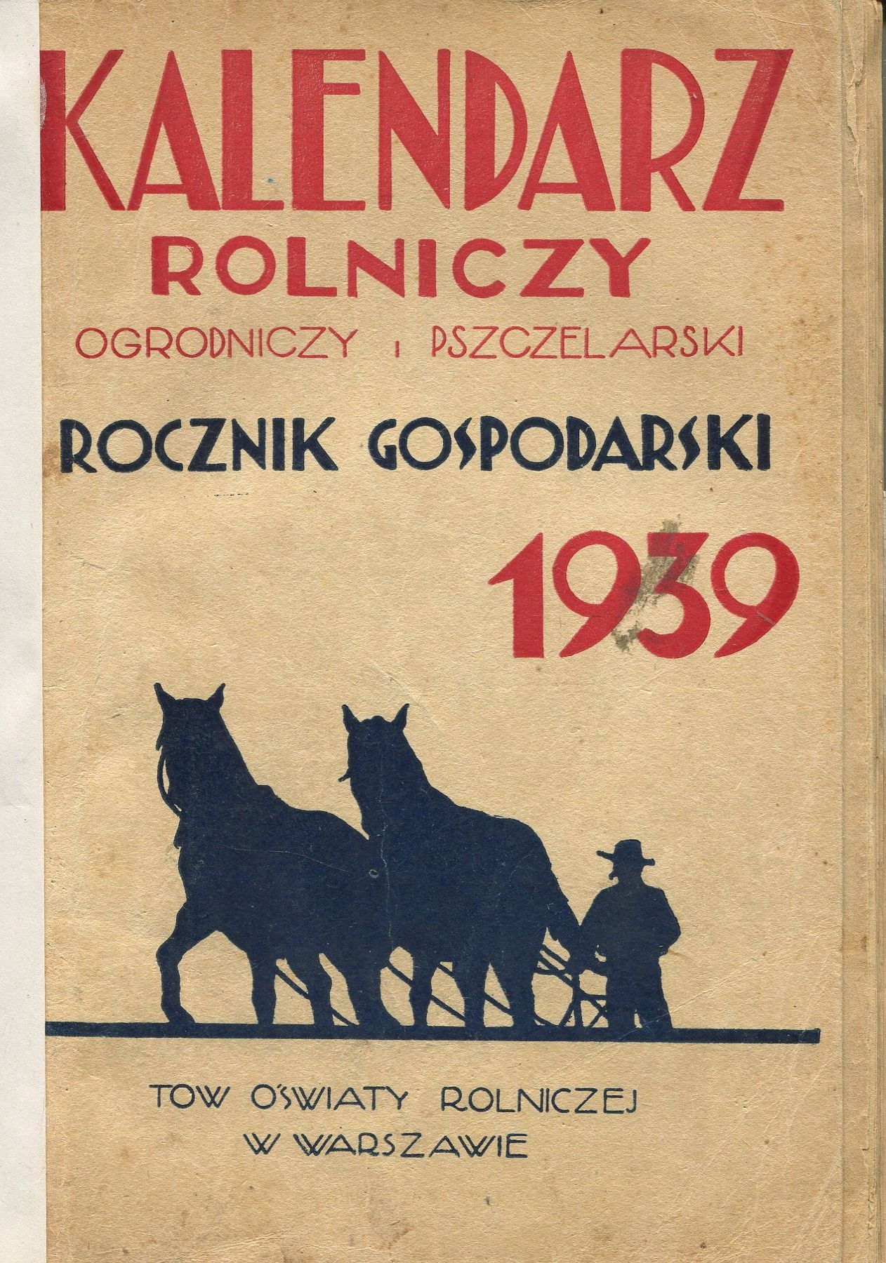 KALENDARZ ROLNICZY pszczoły ogrodnictwo 1939 konie