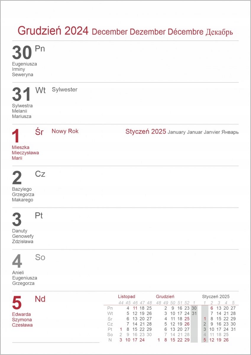 Kalendarz TYGODNIOWY z notesem i znacznikami