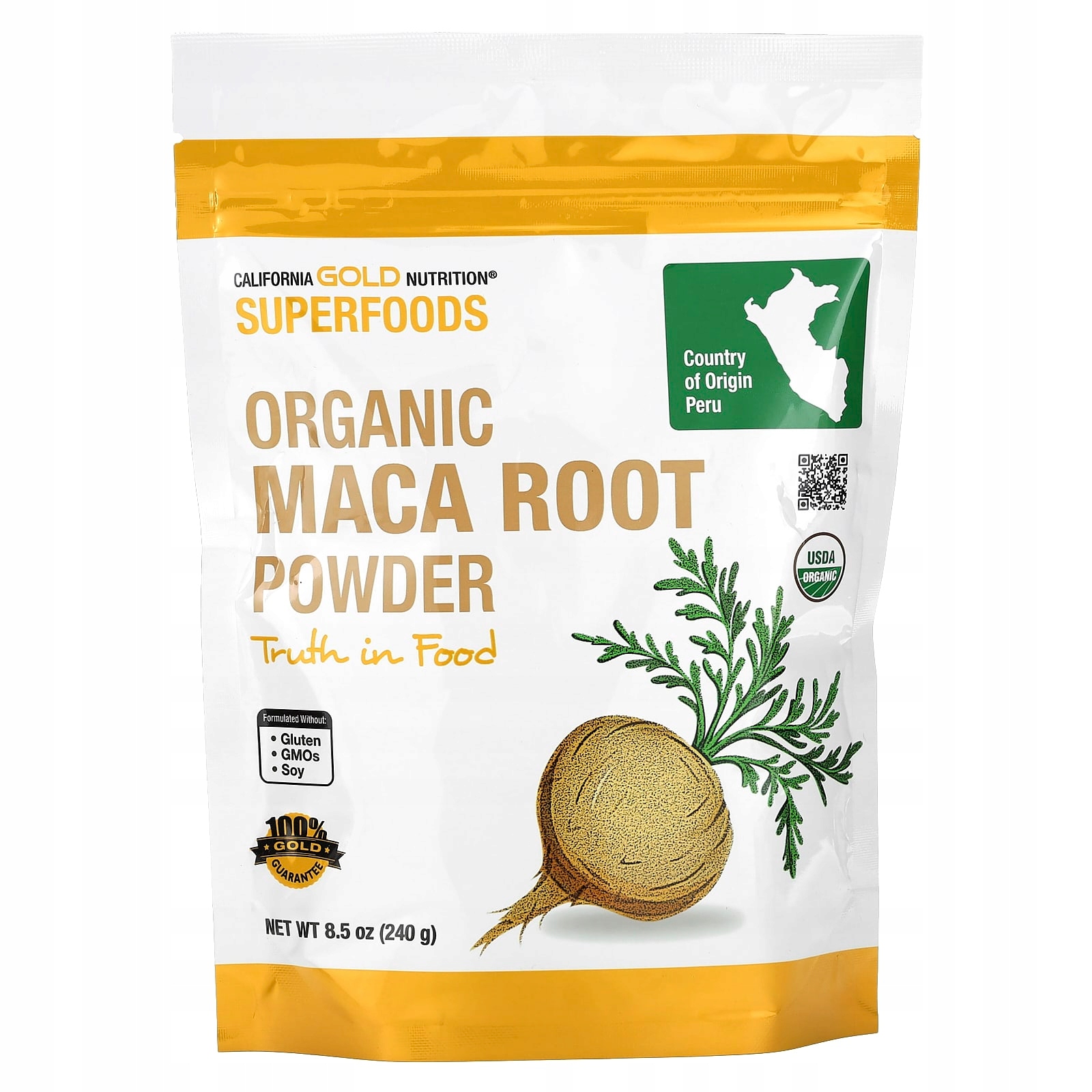 Назва продукту: Каліфорнія Золото харчування, суперпродукти, кореневий порошок органічного Mac, 240 г