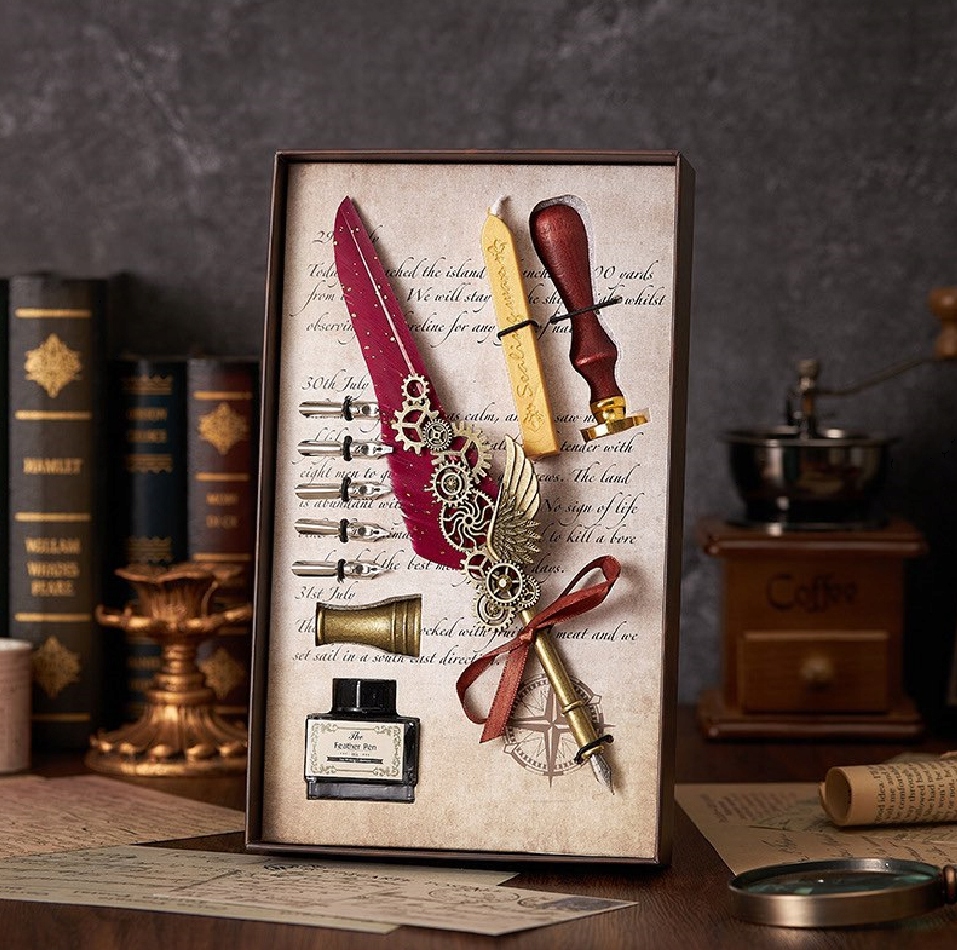 Набір для каліграфії в стилі ретро перо, чорнило, восковий штамп