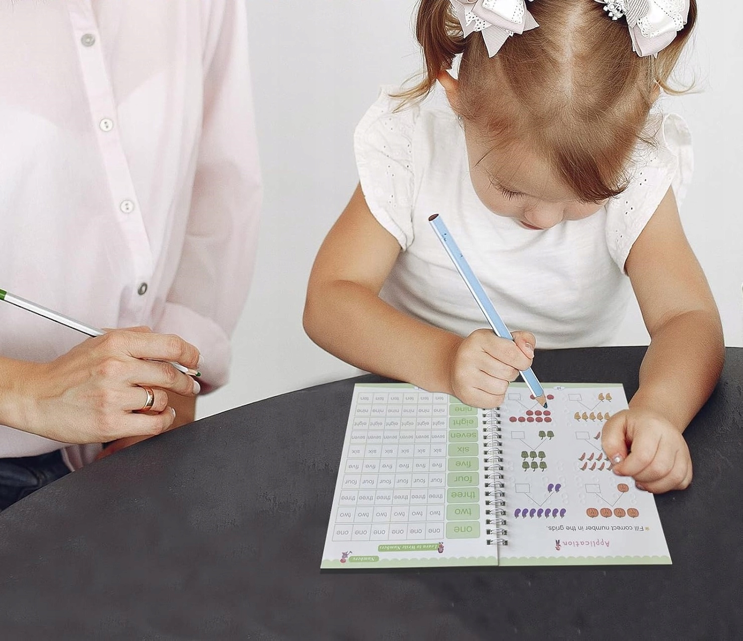 Зошит оснащений чарівною ручкою з тримачем; чорнило зникає автоматично, що полегшує повторне використання. Ручка полегшує правильний хват ручки. Більш щільний бежевий папір менш сприйнятливий до розмазування чорнила, розривів, скручування та пошкодження очей.