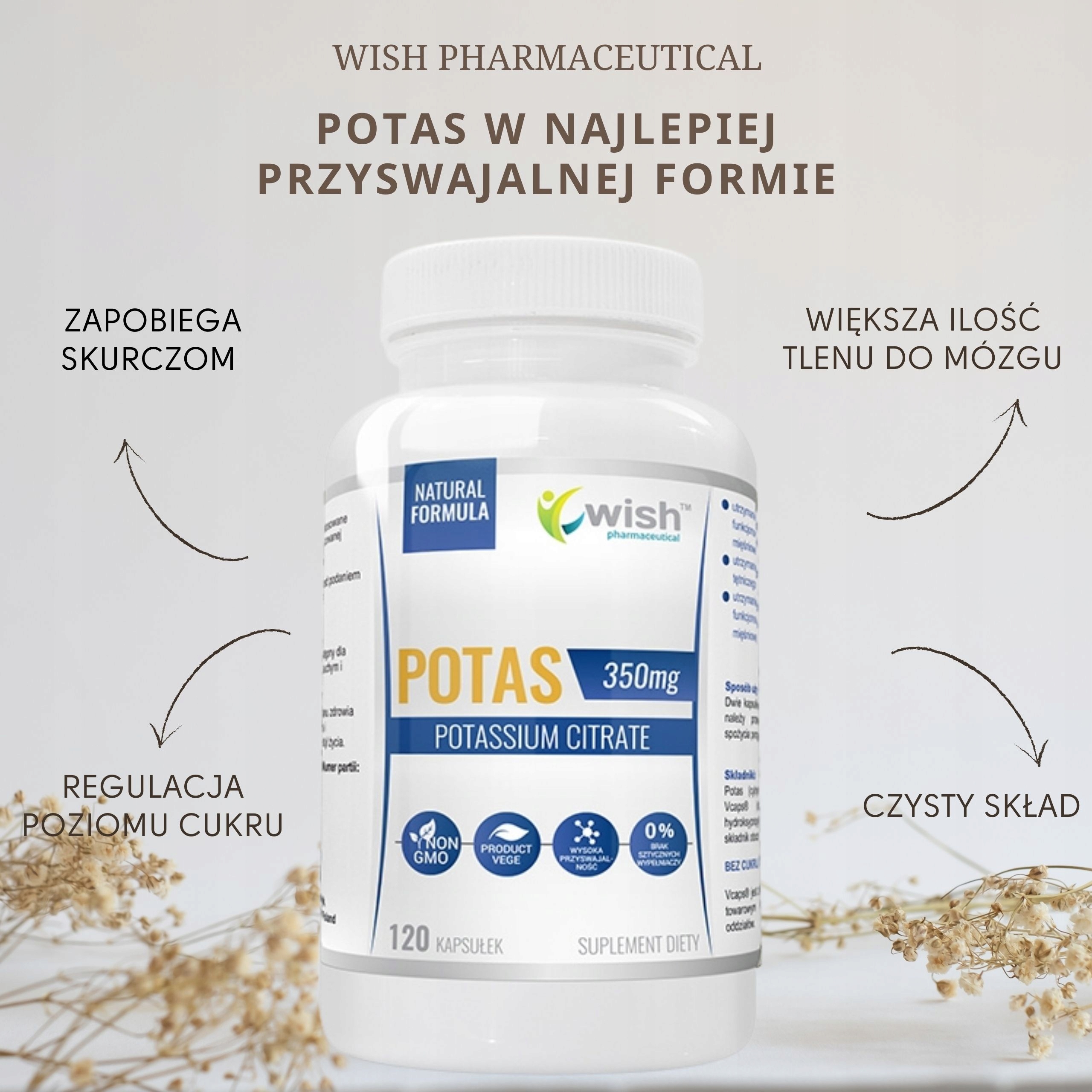 ✔️Відіграє важливу роль у підтримці функції мозку на нормальному рівні. Високий рівень калію дозволяє більше надходження кисню до мозку, тим самим стимулюючи активність нейронів і покращуючи когнітивні функції.