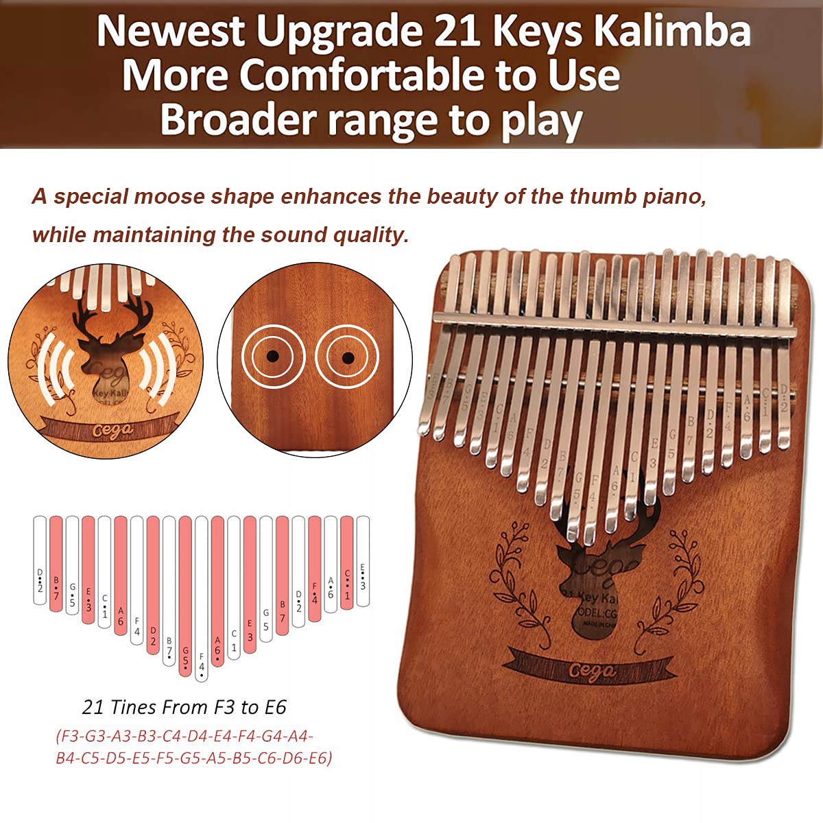 - 21 клавіші, це більш професійне і сприятливіше, ніж звичайні 17 клавіш. Запис, для сім'ї, на вулиці, до школи, на вечірки та розслабитися.
