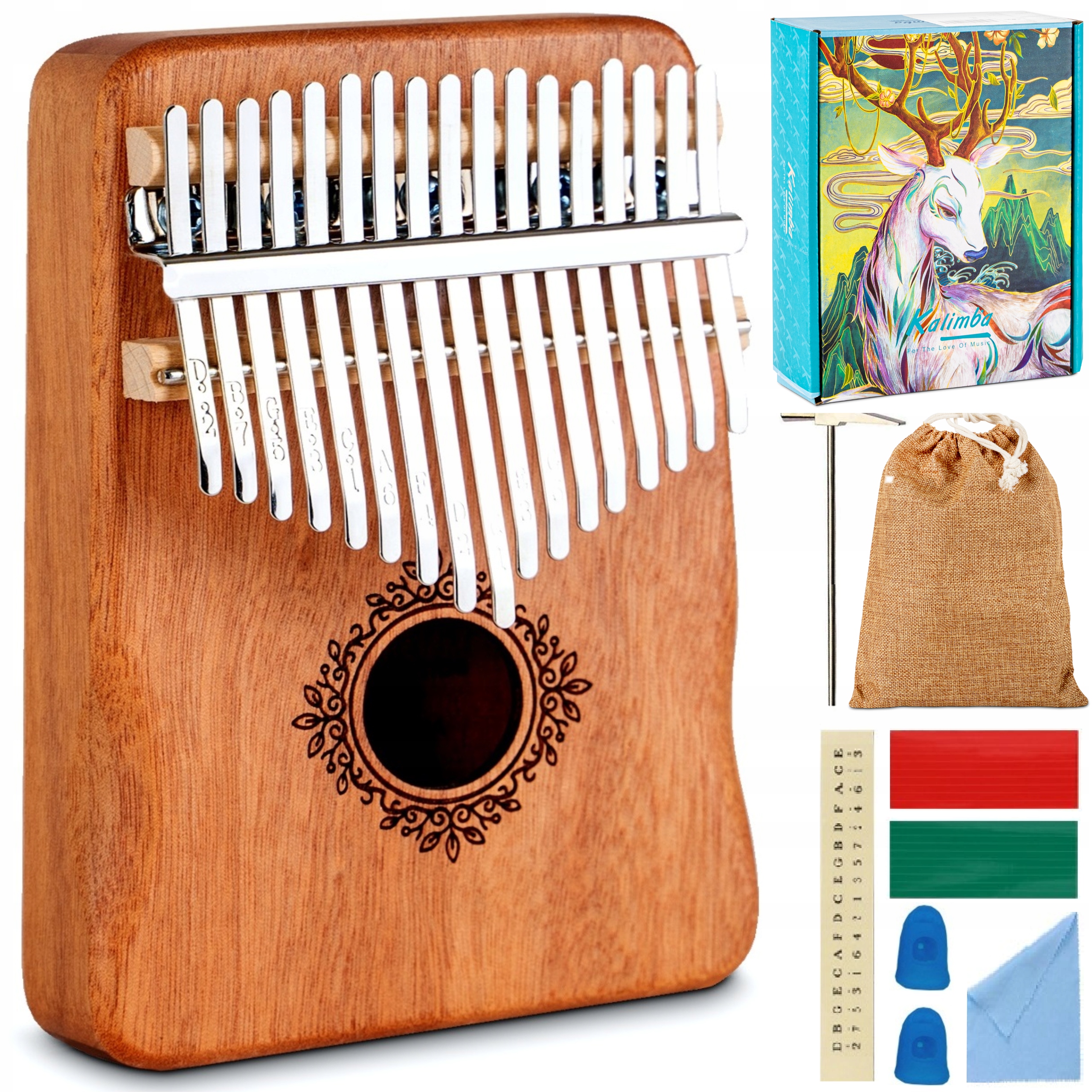 KALIMBA DREWNIANA 17 KLAWISZY AFRYKAŃSKI INSTRUMENT MUZYCZNY PIANINO ZESTAW