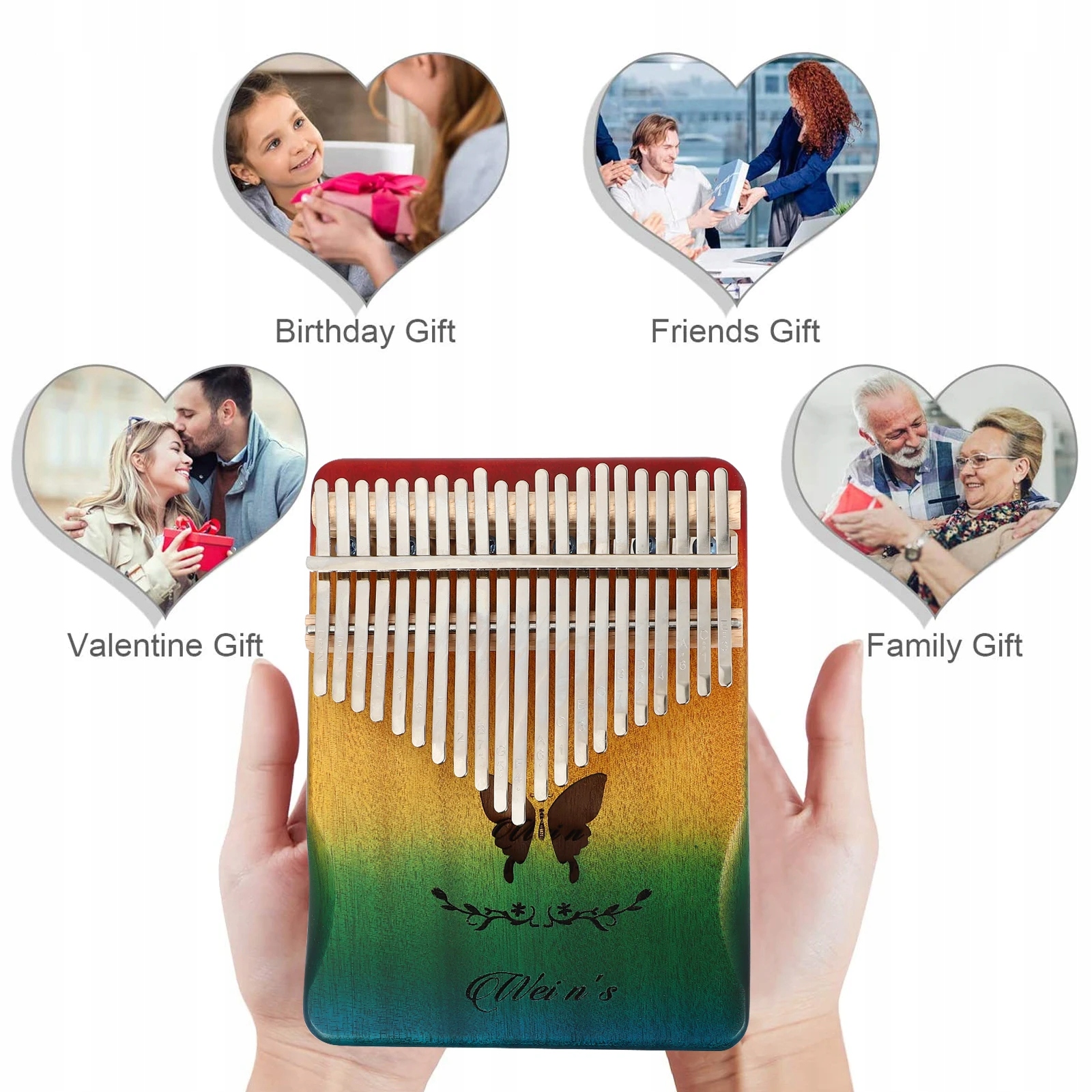 21-клавішне піаніно Kalimba з натурального дерева та заліза, висока міцність і довговічність забезпечують плавну гру.