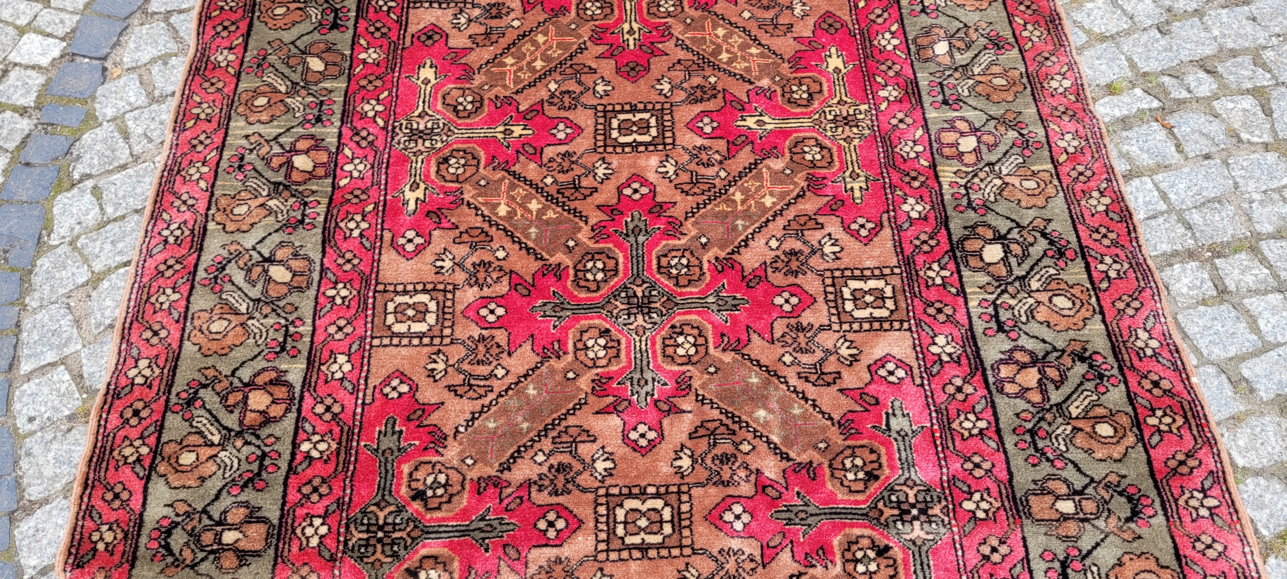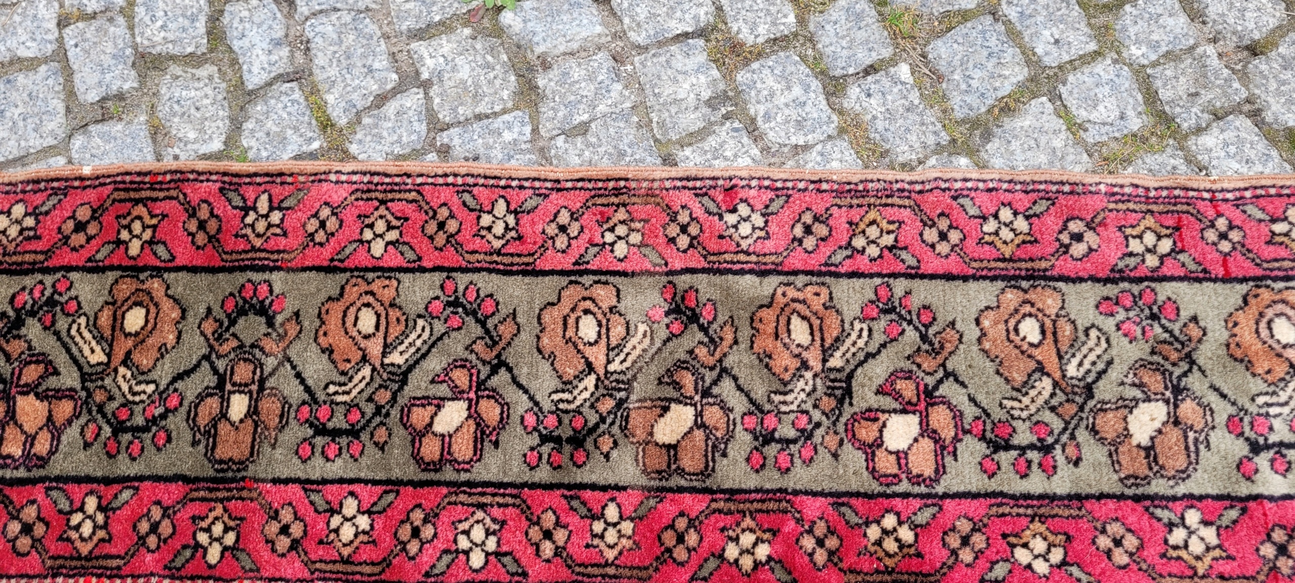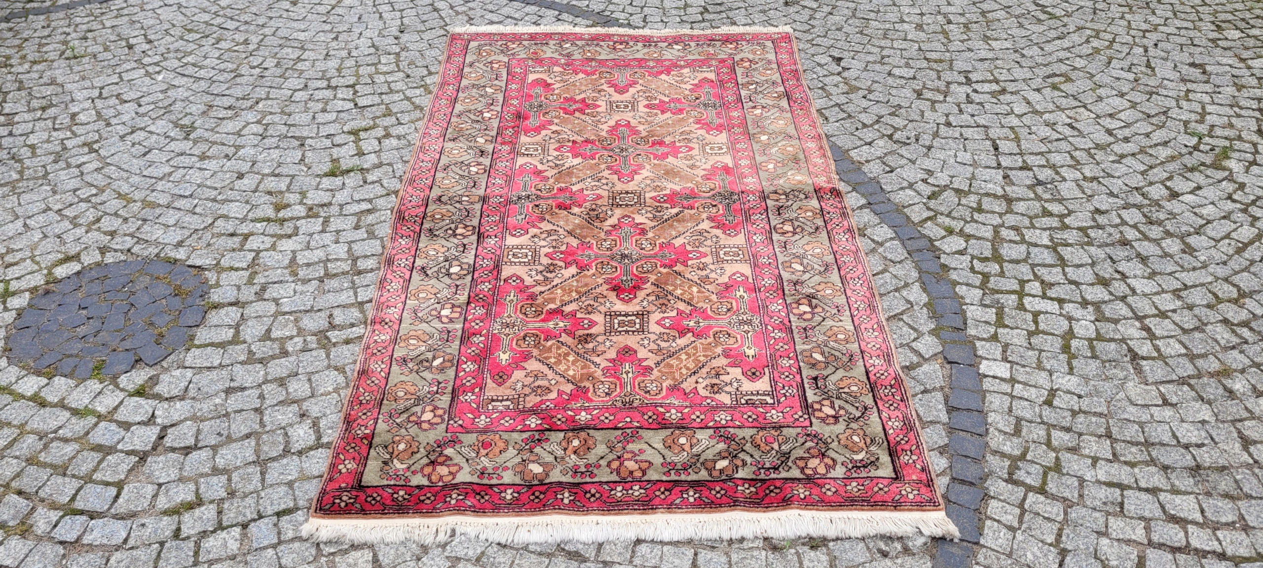 Кавказький казахський килим. Вручну виткана з вовни. Характеризується компактним, приємним на дотик флісом і красивими кольорами та візерунками. В хорошому стані, видно на фото. Має кілька незначних втрат у флісі.