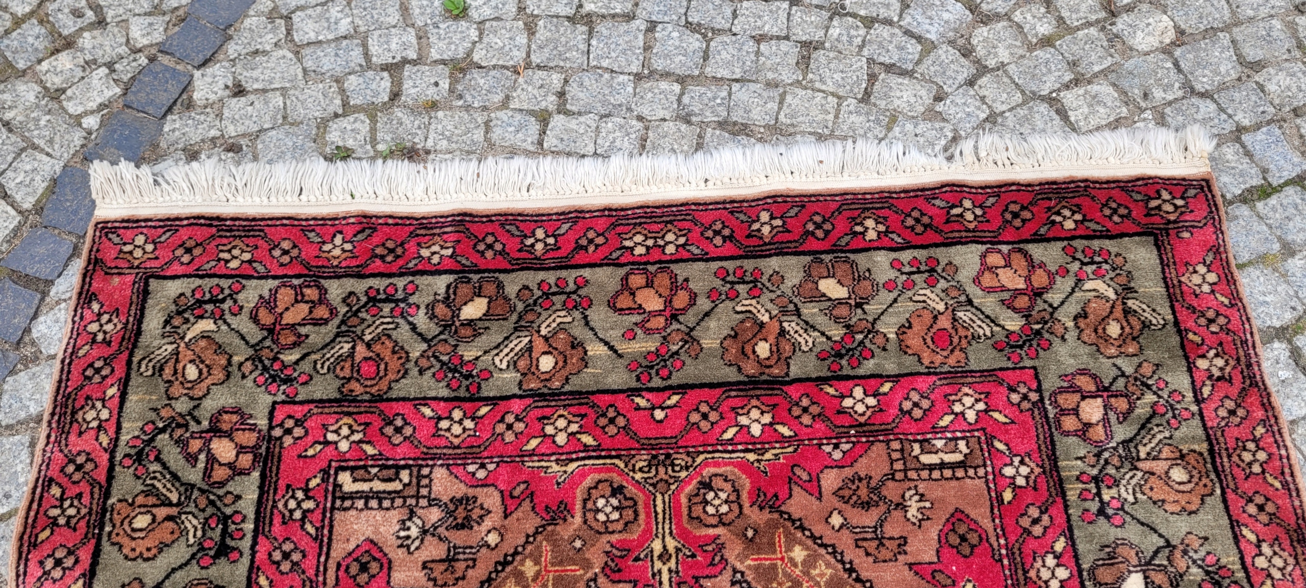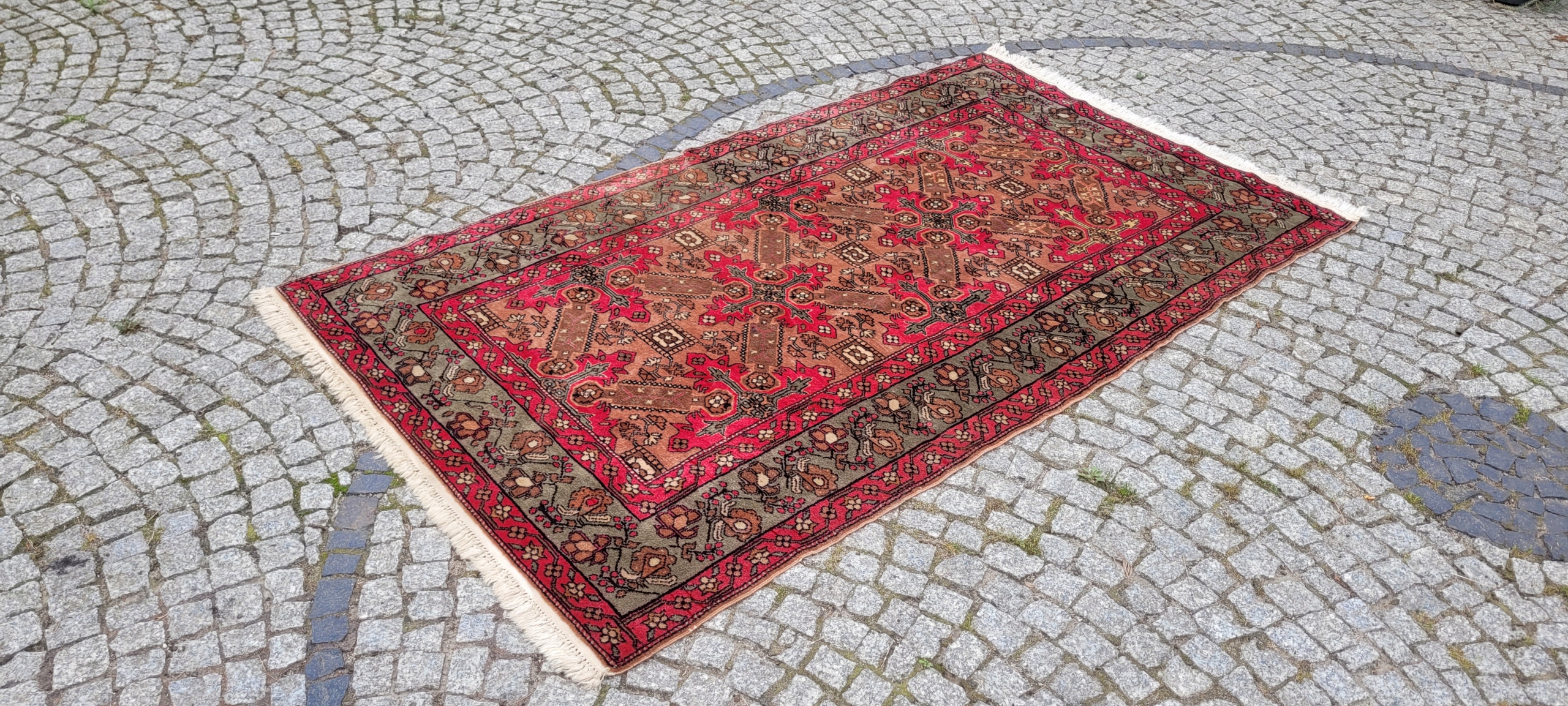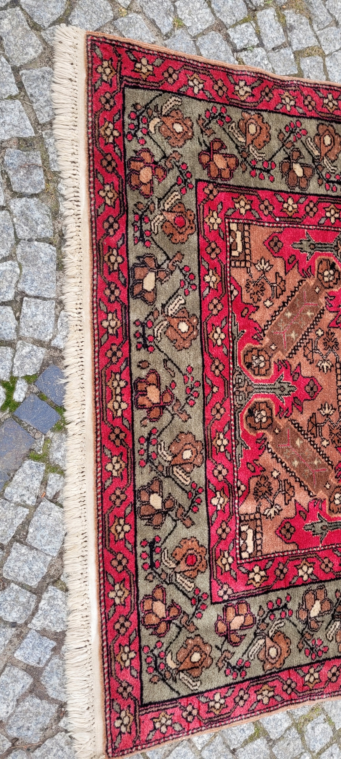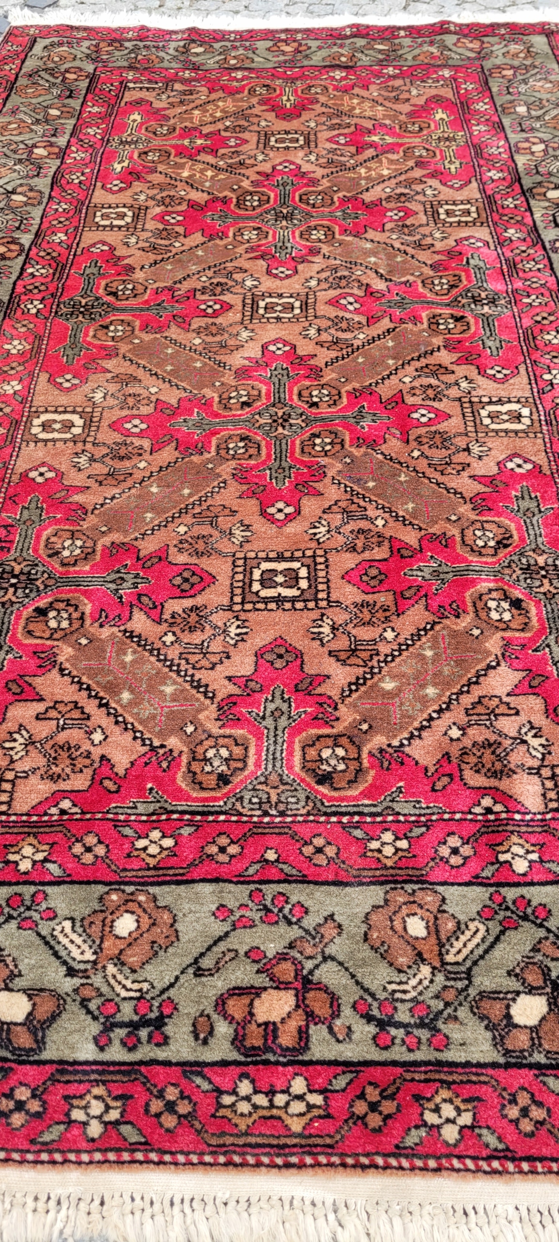 Кавказький казахський килим. Вручну виткана з вовни. Характеризується компактним, приємним на дотик флісом і красивими кольорами та візерунками. В хорошому стані, видно на фото. Має кілька незначних втрат у флісі.