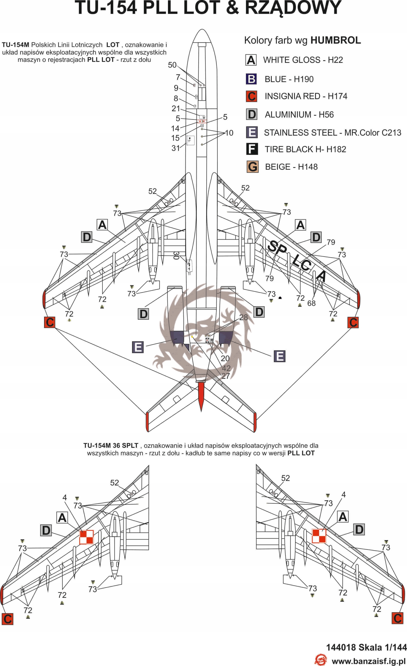 Декаль Ту 154 ЛОТ + уряд 6 картин на одній декалі - Banzai 144