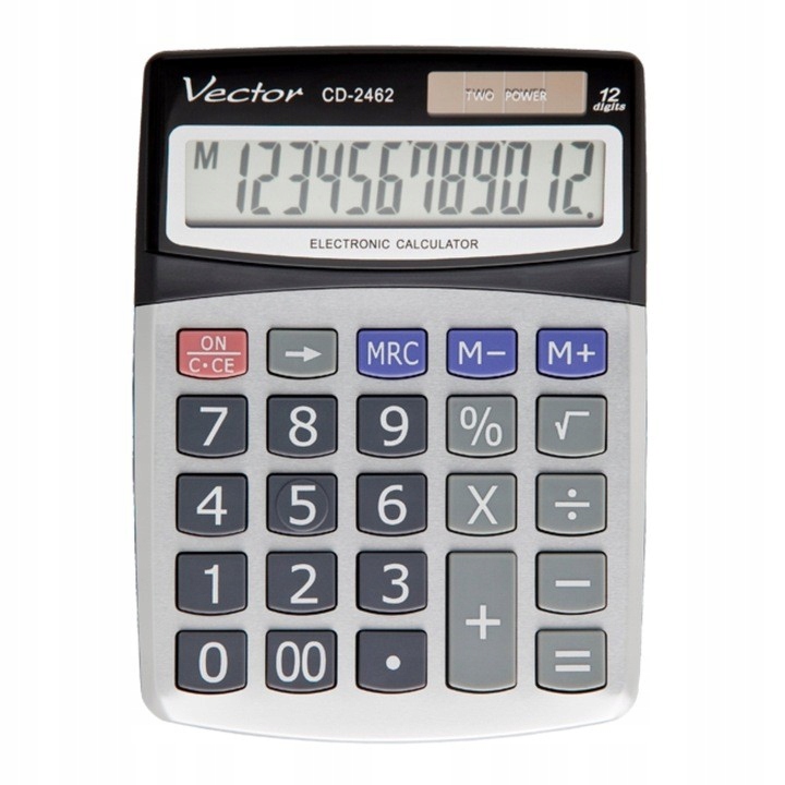 Vector CD-2462 — це дуже популярний калькулятор із 12-розрядним дисплеєм.
