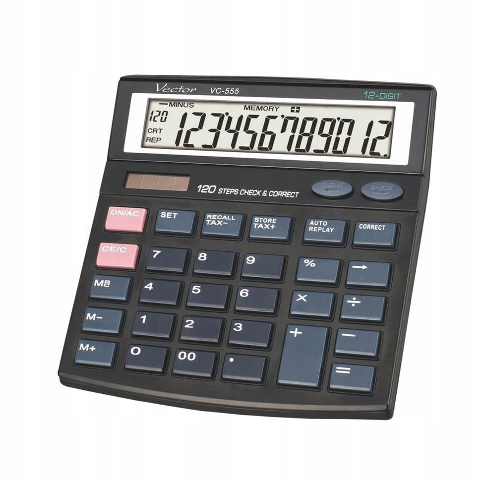 Калькулятор з 12-значним дисплеєм. Він має функцію перевірки правильності до 120 кроків, розрахунок ПОДАТКУ, клавішу повернення, зміну знака +/-.