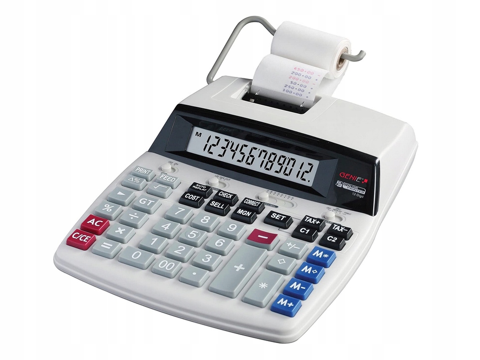 - 12-розрядний настільний калькулятор із червоно-чорним друком (чорнильний рулон)