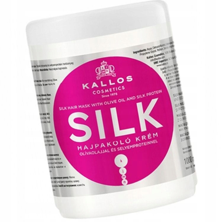 шовк Kallos - це регенеруюча маска для волосся , призначена для догляду за сухими, матовими та пошкодженими нитками . Її багата формула була збагачена оливковою олією та шовковими білками , які інтенсивно зволожують, гладко і відновлюють структуру волосся, відновлюючи її здорову зовнішність та природну еластичність.