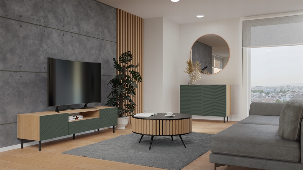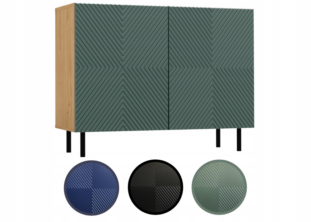 ЧЕСТЕР З РЕБРИСТИМИ ПЕРЕДНЯМИ ЧАСТИНАМИ, 2 ДВЕРІ МОДЕЛЬ: КАМА 2К КОЛІР: Корпус: ДУБ ARTISAN Спереду: ЗЕЛЕНИЙ Ноги: ЧОРНІ Сучасний і стильний комод КАМА - це функціональний і місткий предмет меблів, який додасть нового блиску інтер'єру Вашої спальні, вітальні або дитячої кімнати. Абсолютний хіт і новинка - рифлені дверні фасади, розташовані у вигляді квадратів. Елегантність, стиль і неповторний шик! Великою перевагою є круглі металеві ніжки висотою 13 см, які додають візуальної легкості всій конструкції та роблять комод стійким. Внутрішня частина комода складається з полиць, які допоможуть розставити речі. Буде легше знайти те, що ви шукаєте.