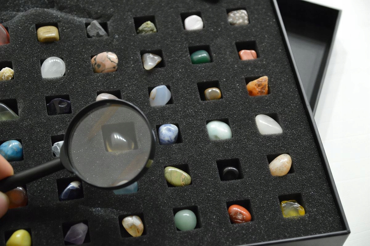 Професійний підхід до колекції! У комплект поставки входить збільшувальне скло для точного дослідження структури каменів.