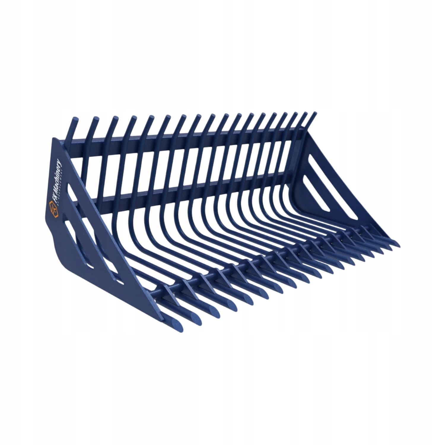- Сталеві стрижні Ø30 мм розподіляються кожні 72 мм, утворюють ефективну екранізаційну систему, яка відокремлює невеликі фракції, такі як пісок або ґрунт, від більших елементів - каміння, блоків та агрегату - вже при завантаженні. Це суттєво прискорює роботу та усуває необхідність подальшого сортування.