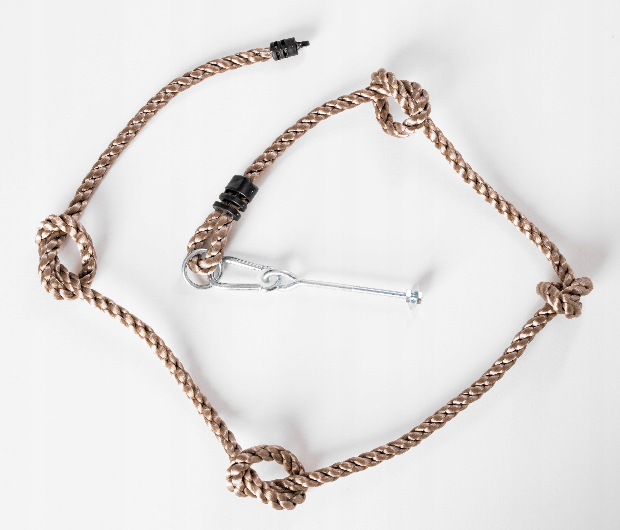 Мотузка виготовлена з міцного поліпропілену товщиною 20 мм. Лазіння по вузлах мотузки вимагає зусиль багатьох груп м’язів: рук, які повинні витримувати вагу тіла, ніг, які потрібно ефективно підтягувати, і, перш за все, м’язів живота, які відповідають за підтягування. Це чудовий спосіб безпечної розваги в поєднанні з фізичною активністю, яка покращить фізичний стан дітей, а також дозволить приємно провести час на свіжому повітрі.