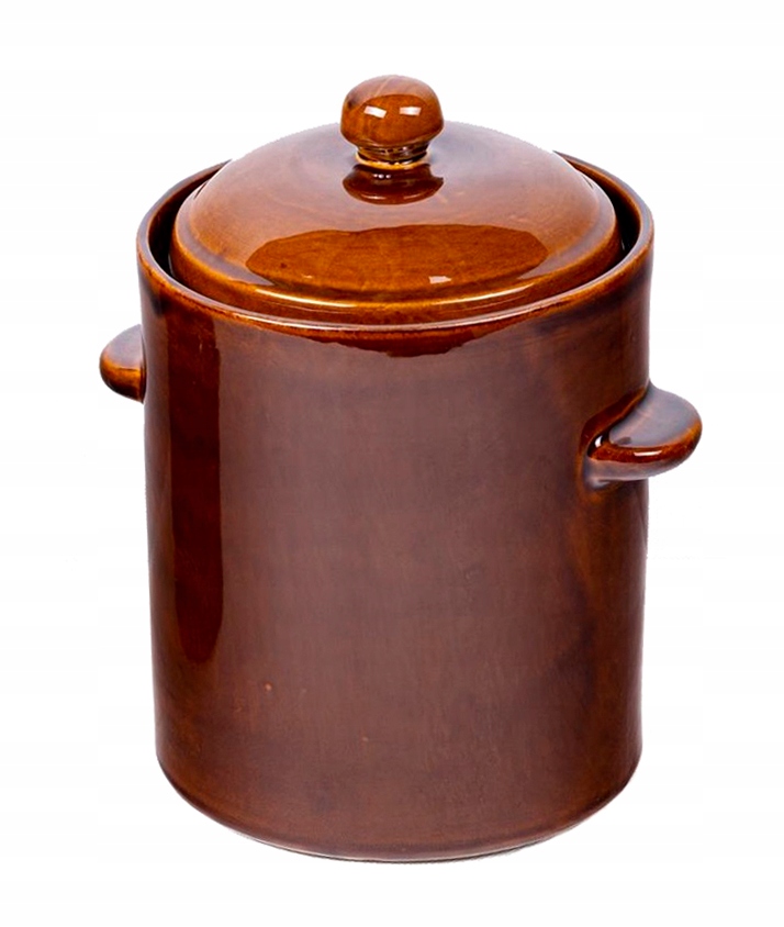 Оригінальний керамічний горщик з високоякісної кераміки з натуральної керамічної глини. Завдяки використанню для виробництва високоякісної сировини, він абсолютно безпечний при контакті з харчовими продуктами. Каструля покрита міцним шаром емалі, що забезпечує виняткову міцність і стійкість до стирання. Керамічні горщики призначені для тривалого зберігання продуктів в екологічних умовах, без використання консервантів. Вони чудово підходять для соління огірків, квашення капусти, сушіння м'яса, зберігання сала. Якщо вставити кришку у наповнений водою фланець каструлі, потік повітря всередину каструлі перекриється. Поміщені в нього овочі бродять, виробляючи вуглекислий газ, який з часом повністю замінює повітря. Таким чином у горщику створюється безкиснева атмосфера. Дозріваючи в ньому консерви набувають неповторного смаку. Вони характеризуються високою якістю, функціональністю та естетичним виконанням.