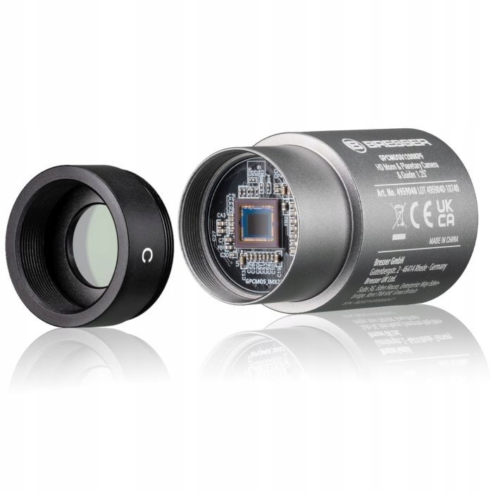 HD-камера BRESSER для фотографій Місяця і планет оснащена новим сенсором кольору SONY IMX225 CMOS з високою чутливістю, який навіть при використанні простого обладнання для спостереження за об'єктами неба дозволяє досягти дивовижних ефектів за дуже короткий час. час експозиції. Крім того, цю найсучаснішу камеру можна використовувати як автонавідник для активного відстеження основної камери, такої як SLR або CCD-камера. Універсальна кольорова камера CMOS забезпечує особливо чіткі зображення Місяця та планет.