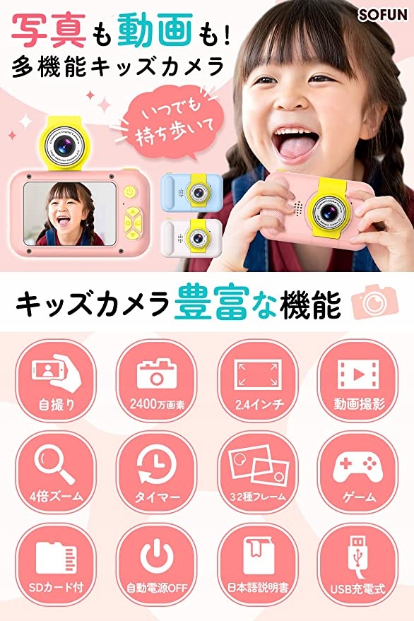 - Оснащено 2-дюймовий IPS-екран для відображенняреалістичних зображень. 5-мегапіксельний 100-градусний ширококутний об’єктив може задовольнити потреби дітей. Картка TF на 32 ГБ може зберігати понад 1000 фотографій.