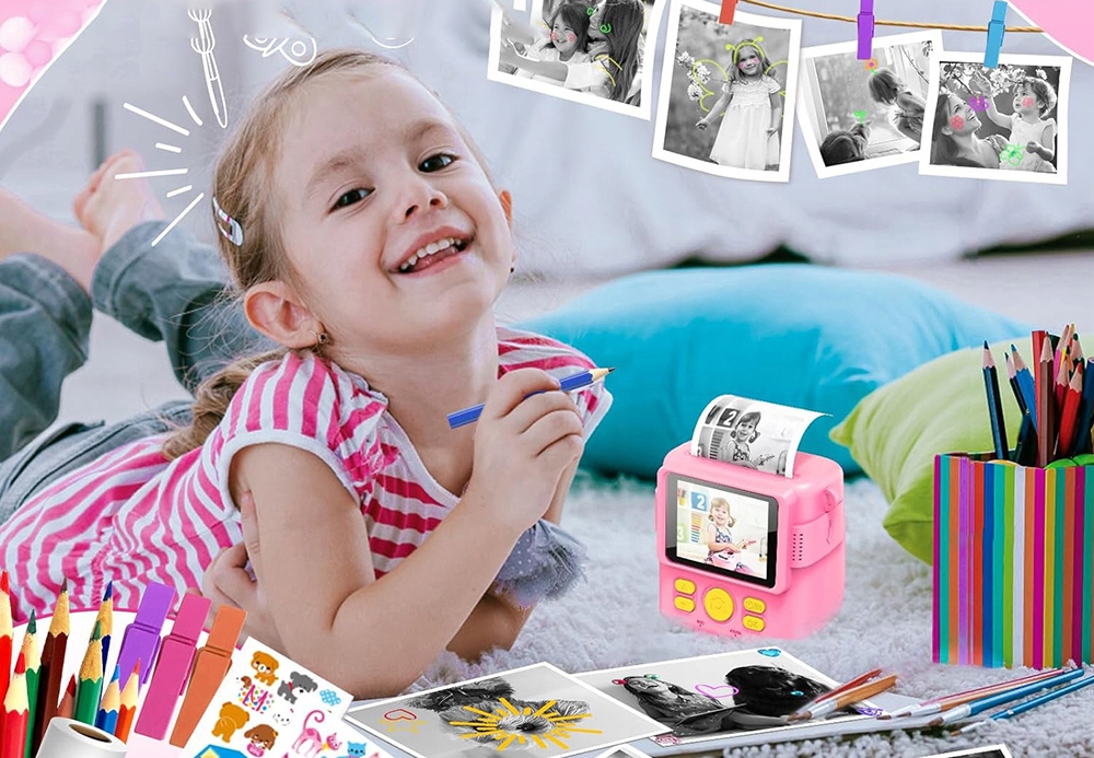 Безпосередній камера для дітей пропонує 8 дзеркальних ефектів, 18 кадрів та 5 фільтрів. Діти можуть додавати рамки та фільтри під час друку або фотографування. Атаки 6 барвистих ручок та 5 наклейок з мультфільмами дозволяють дітям створювати унікальні твори мистецтва та представляти свою творчість та уяву.