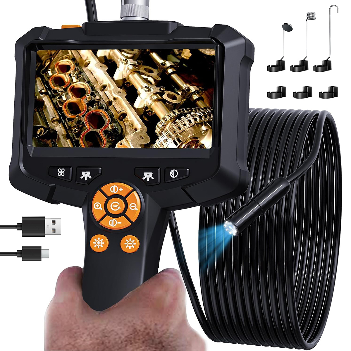 Youkuke industrial endoscopes in real time detection Boroscope, 4.3-inch endoscopic camera with light, charging via USB-C, waterproof endoscope IP67, HD 1080P inspection camera with 5-meter semi-stiff elastic cable, gadgets for men