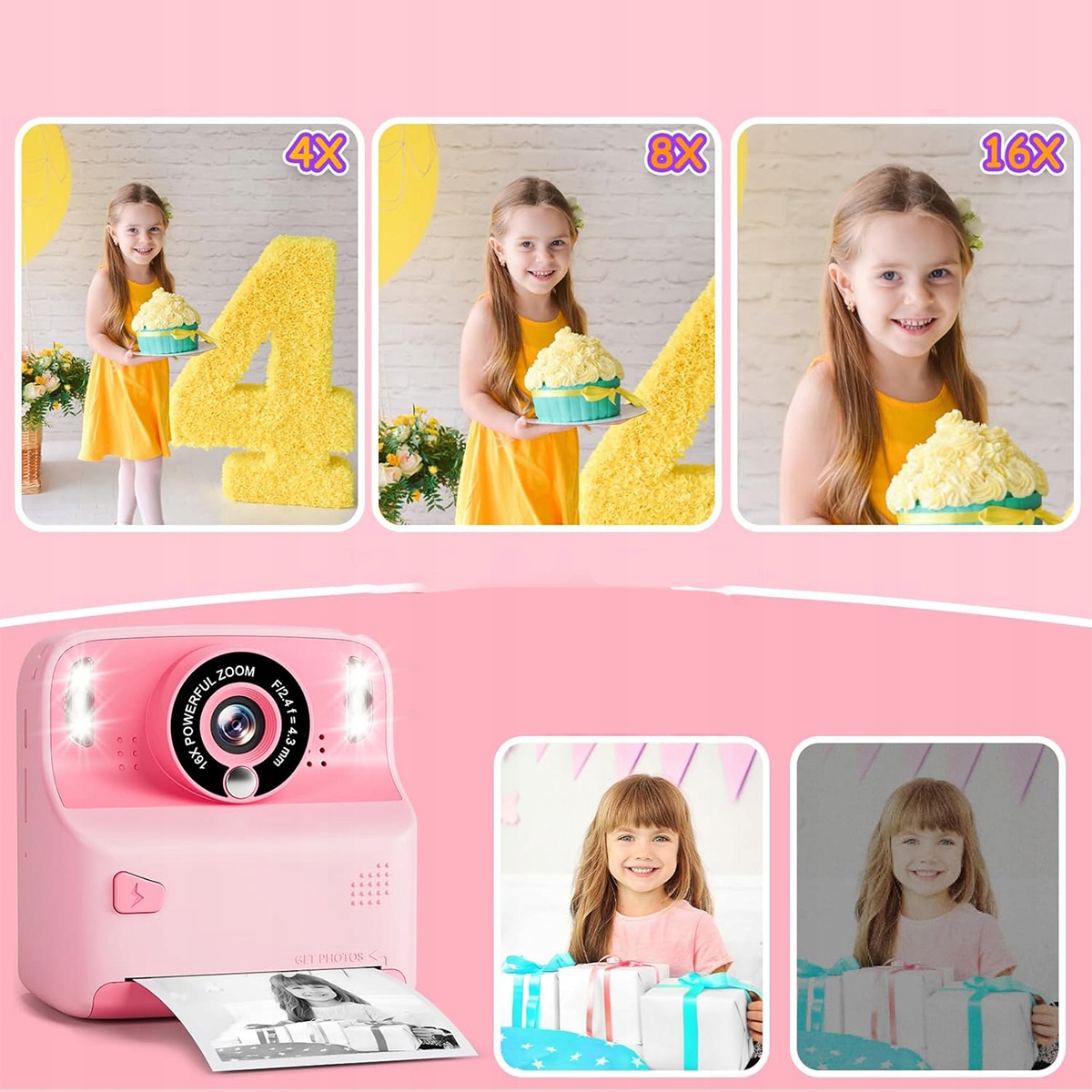 Завдяки 2,4-дюймовому екрану ця камера дозволяє легко переглядати фотографії та відео. Крім миттєвого друку, він також пропонує запис відео 1080P, 15 кадрів фільтра, 16-кратне цифрове збільшення, спалах, сповільнену зйомку, серійну зйомку, ігри, дзеркало для селфі та відтворення MP3. Ваші діти можуть насолоджуватися фотографуванням і миттєвим друком. Ідеально підходить для дитячої фотографії та як маленька іграшка для друку.