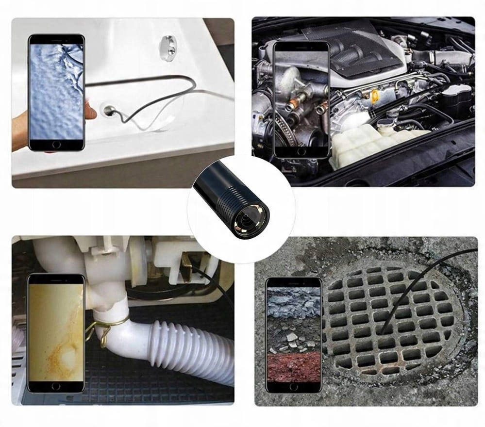 Водостійка USB-ендоскопічна камера – це продукт, який ідеально підходить для спостереження за важкодоступними місцями, такими як частини машин, внутрішні частини труб, дренажні та впускні канали, вентиляційні канали тощо види отворів або щілин. Завдяки цьому ви побачите місця, недоступні будь-яким іншим способом. Працює зі смартфонами та планшетами Android. Камеру можна підключитидо телефону/планшета Android або комп’ютера. Камера має вбудоване світлодіодне освітлення.