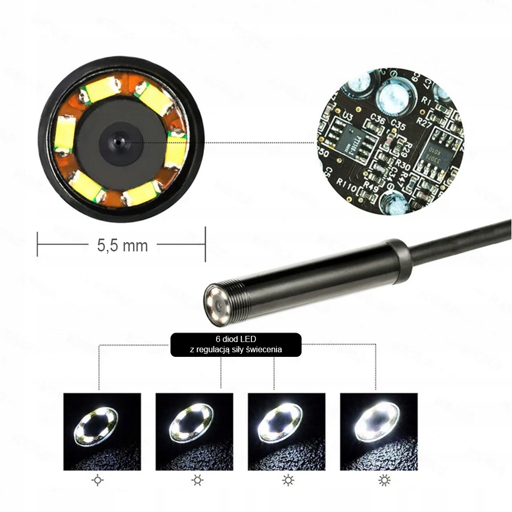 Незамінна оглядова камера в кожній майстерні та вдома. Діаметр камери всього 5,5 мм! Завдяки цьому ми можемо зазирнути в недоступні будь-яким іншим способом місця, такі як моторний відсік або домашні закутки. Камера працює з такими пристроями, як планшети та смартфони на базі Android.
