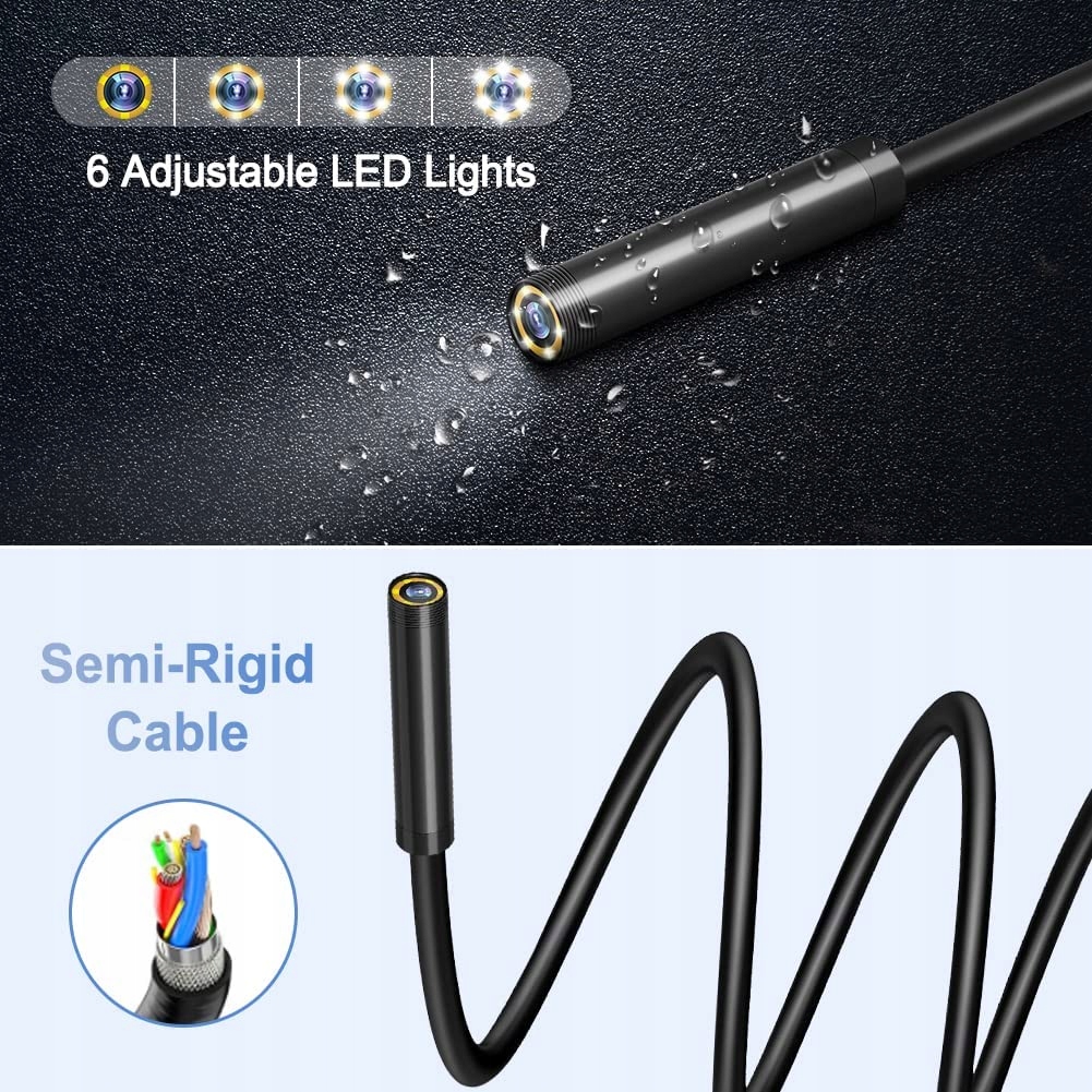 Оновлений більший і чіткий кольоровий екран Оновлена версія камери ендоскопа, оснащена 5-дюймовим кольоровим екраном HD, який є більш енергозберігаючим і має кращий ефект зображення, ніж інші. Робить перевірку швидшою та легшою, фотографувати та записувати відео дуже зручно. Камера HD 1080p і світлодіодні ліхтарі. Ця оглядова камера оснащена об’єктивом HD 1080p, який підтримує поворот на 360 градусів і забезпечує високоякісні чіткі зображення та відео 1080p. 6 світлодіодів регулюються на 3 рівнях яскравості та забезпечують камері чудову видимість найтемніших ділянок огляду. Кабель 3 м і карта на 32 Гб. Камера оснащена високоякісним змійчастим кабелем, який є більш гнучким, ніж будь-який інший дешевий жорсткий дріт, завдяки чому легше бачити там, де очі не бачать. Ми також пропонуємо карту пам'яті на 32 Гб. Усі фотографії та відео можна переглядати в будь-який момент. Менший об’єктив камери та батарея ємністю 3000 мАг — об’єктив нашої інспекційної камери має діаметр лише 8 мм, що полегшує розширення поля огляду на ширший простір. Акумулятор великої ємності 3000 мАг дуже ємний, перезаряджається і працює до 6 годин. Водонепроникна камера IP67 і широке застосування Лампова камера має клас водонепроникності IP67 на глибині до 2 м під водою протягом 80120 хвилин. Один клік, щоб зробити фотографії та записати відео. Широко використовується для технічного обслуговування автомобілів, інспекції промисловості, інспекції будинків, інспекції труб, інспекції обладнання та інспекції стічних вод тощо.
